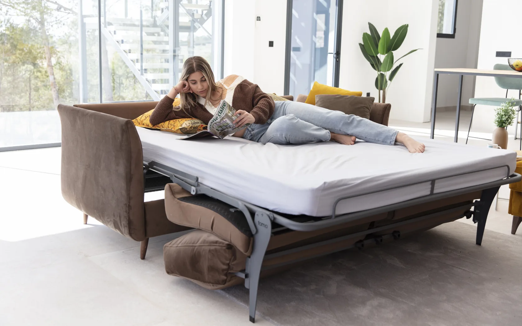 В рамках модели Helsinki мы представляем новый диван с раскладывающимся механизмом. Нам удалось сохранить высокий комфорт, а также элегантный и легкий дизайн дивана Helsinki, поскольку на первый взгляд он не похож на диван-кровать. Эта новая версия кровати обеспечивает большую дополнительную ценность модели, поскольку мы можем разместить ее в любой гостиной или гостиной и иметь возможность превратить ее в кровать, когда нам это понадобится.
