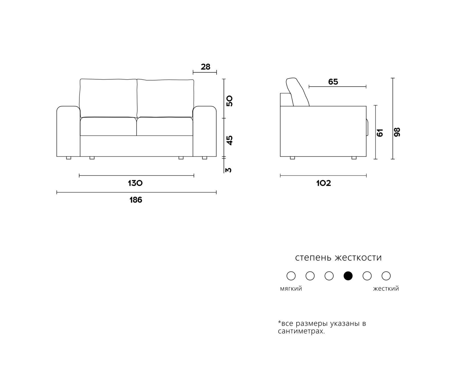 2-х местный нераскладной диван LEGRAN с глубокими сиденьями, увеличенными и объёмными приспинными подушками. Особую изюминку модели придаёт закруглённая форма мягких и широких подлокотников, на которые можно с комфортом прилечь. Все края и соединительные элементы прошиты декоративной двойной строчкой. Диван оснащён скрытыми ножками.