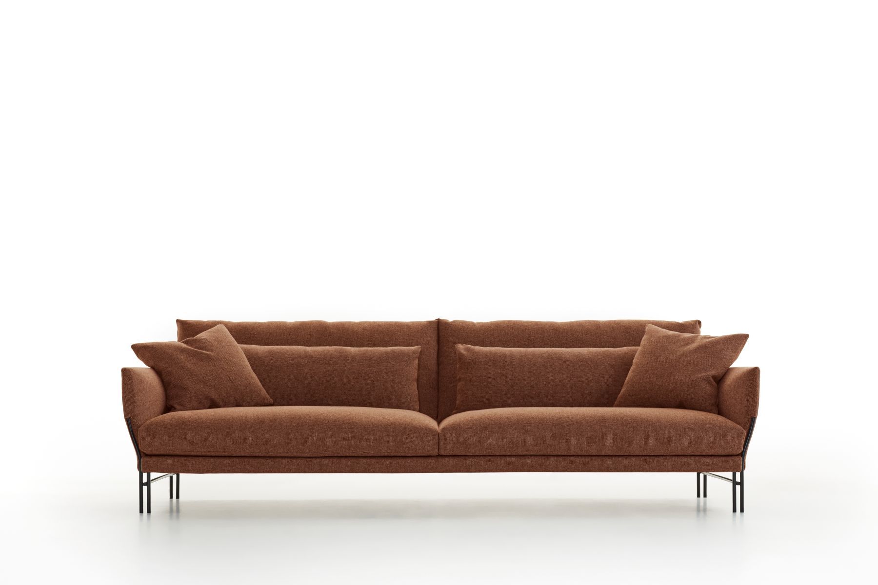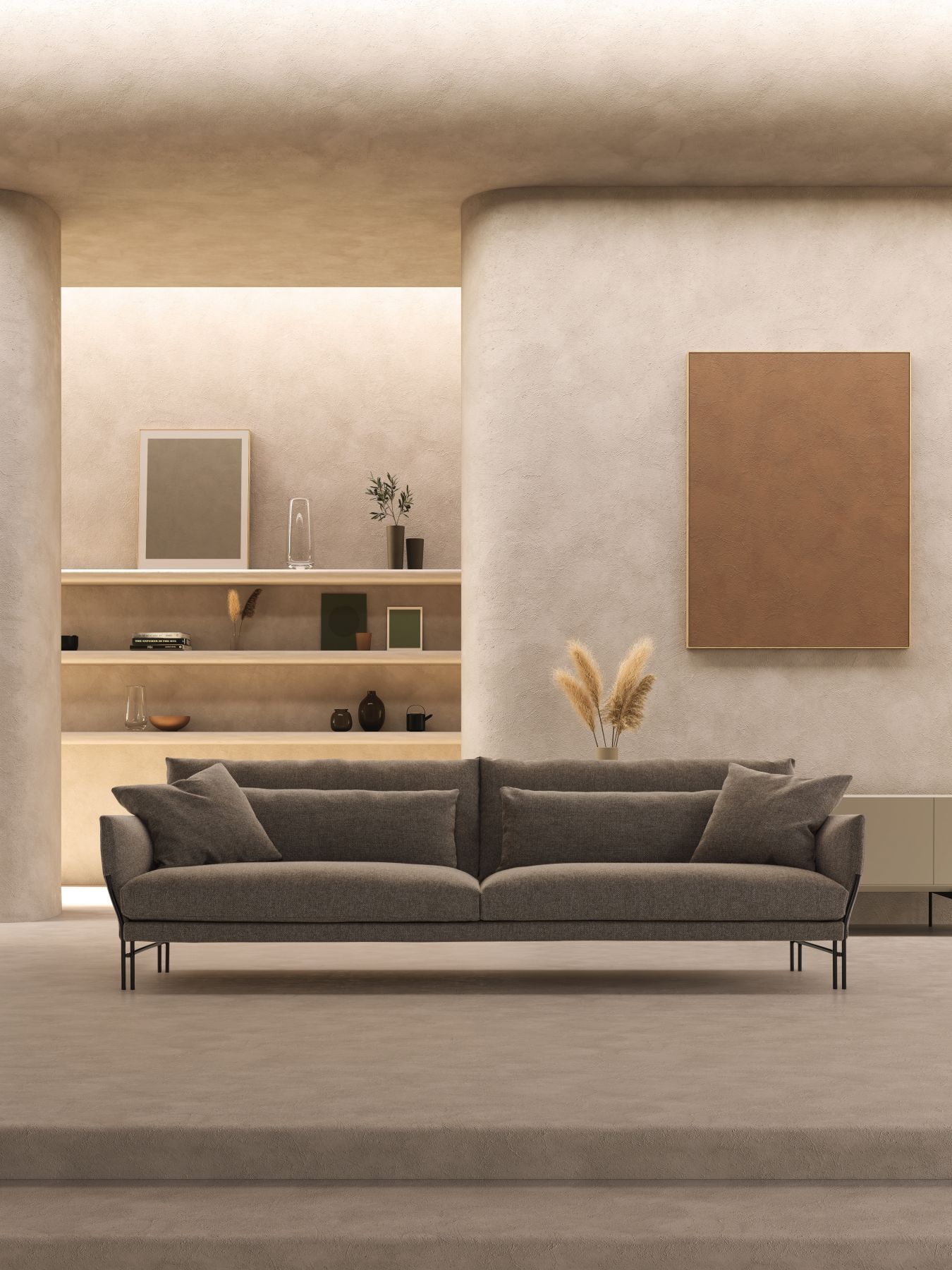 Этот диван сочетает в себе элегантные, чистые линии с комфортом, обеспечиваемым толстой и мягкой зоной отдыха, качества, которые также передает спинка дивана. С эстетической точки зрения одной из его наиболее отличительных особенностей является видимое основание, состоящее из двойной системы ножек, которая подчеркивает легкость и прочность конструкции.