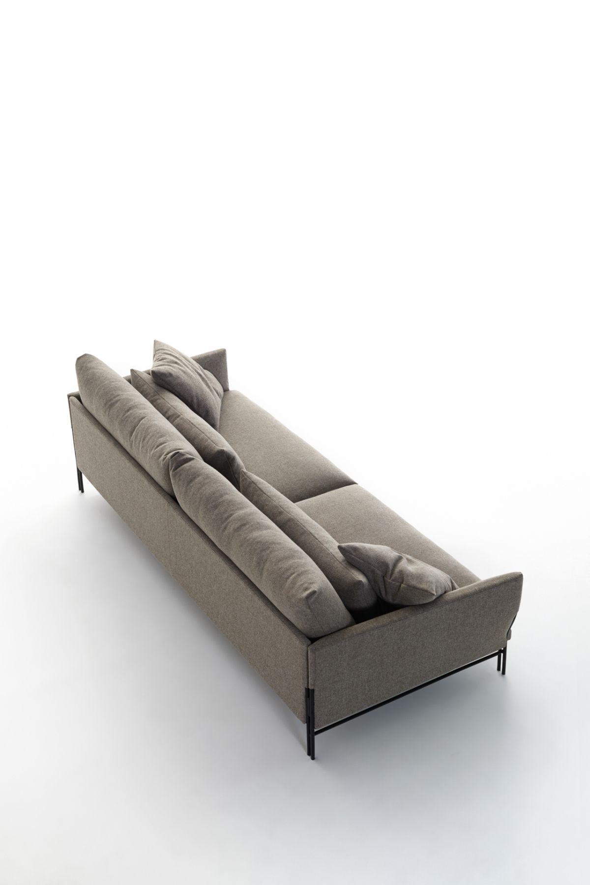 Этот диван сочетает в себе элегантные, чистые линии с комфортом, обеспечиваемым толстой и мягкой зоной отдыха, качества, которые также передает спинка дивана. С эстетической точки зрения одной из его наиболее отличительных особенностей является видимое основание, состоящее из двойной системы ножек, которая подчеркивает легкость и прочность конструкции.