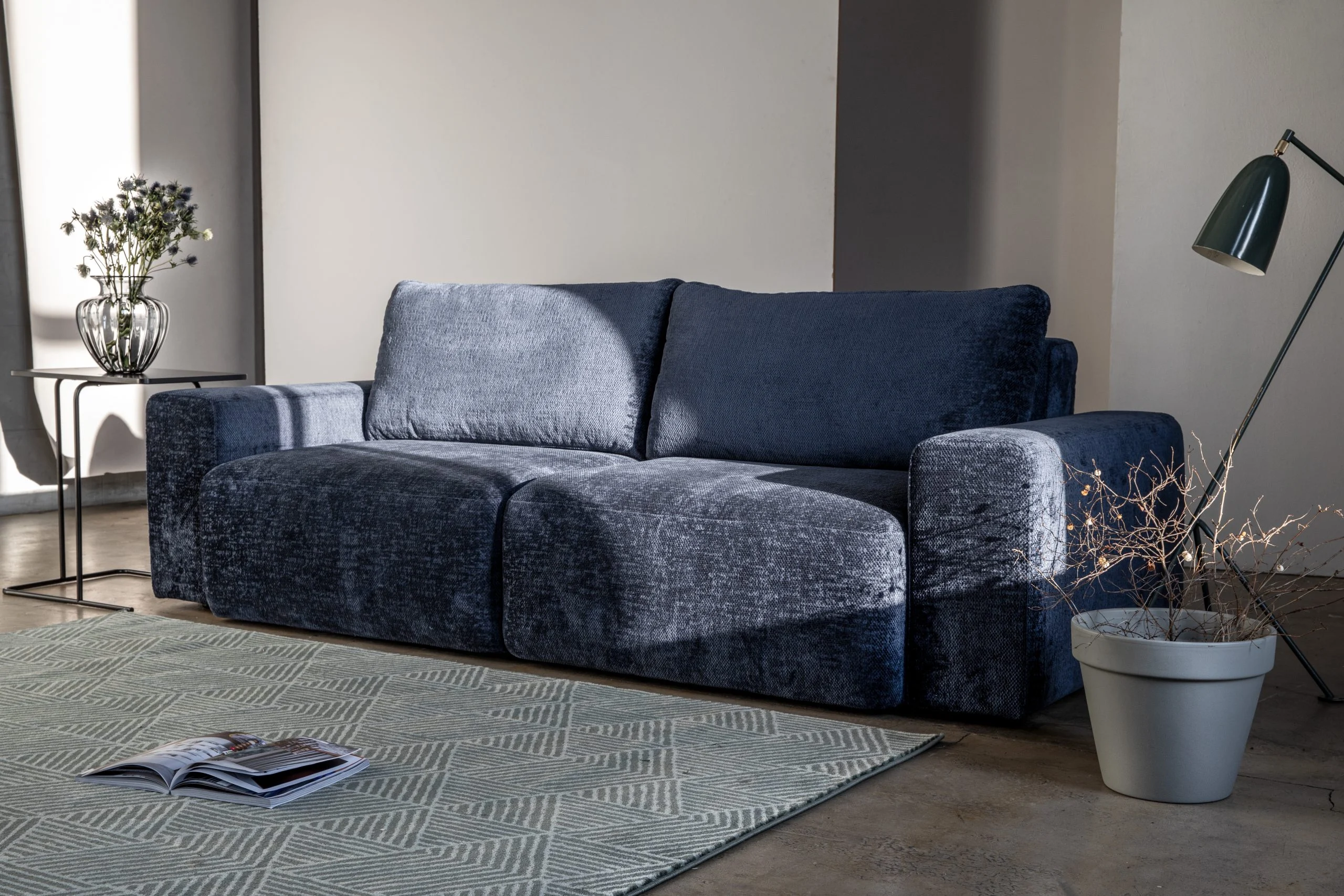 Основательный диван MARKO с раскладным механизмом, двумя съёмными приспинными подушками и просторными сиденьями завораживает своим монолитным стилем. Это самый объёмный диван в коллекции KULT: с широкими и мягкими подлокотниками без острых углов, с выверенной плавностью линий и заметной декоративной строчкой. Скрытые ножки поддерживают его минималистичный дизайн, а раскладной механизм и ящик для белья — неизменную функциональность.