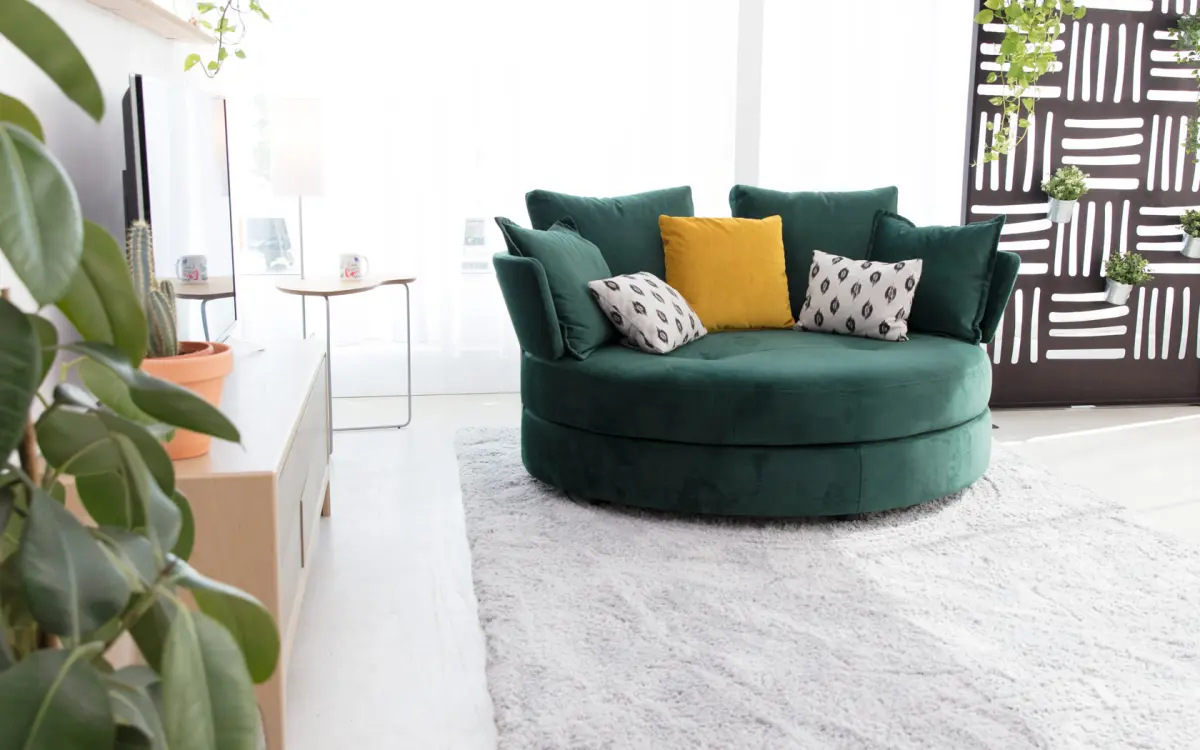 Это диван шириной 175 см и только на 30 см глубже обычного дивана. Опция поворота позволяет легко ориентировать ее в разных частях комнаты. Он украшен множеством подушек, которые обеспечивают большой комфорт. Это идеальный диван для пар, которые любят наслаждаться дома. Будет трудно найти дизайн, который принесет больше счастья в повседневной жизни.