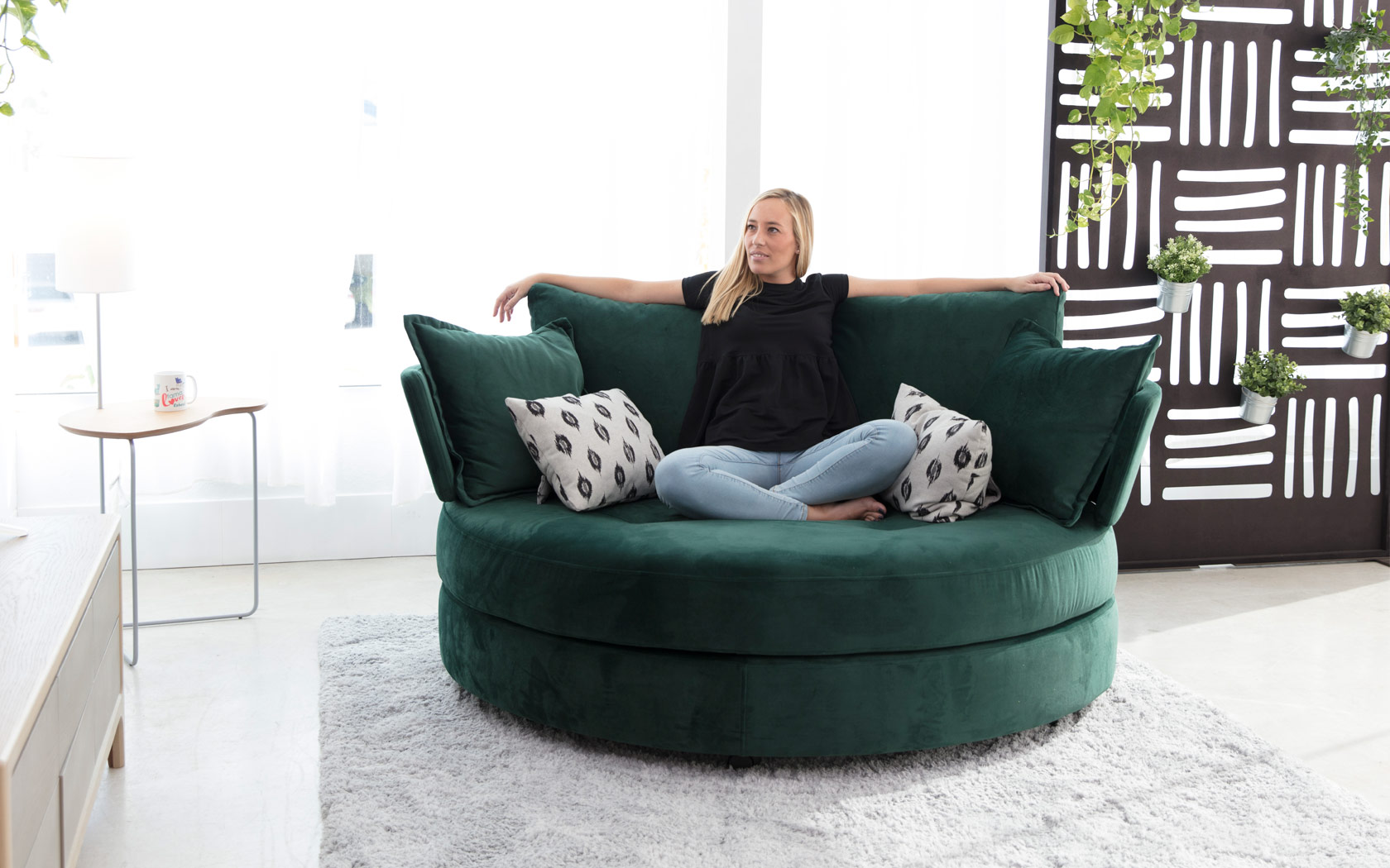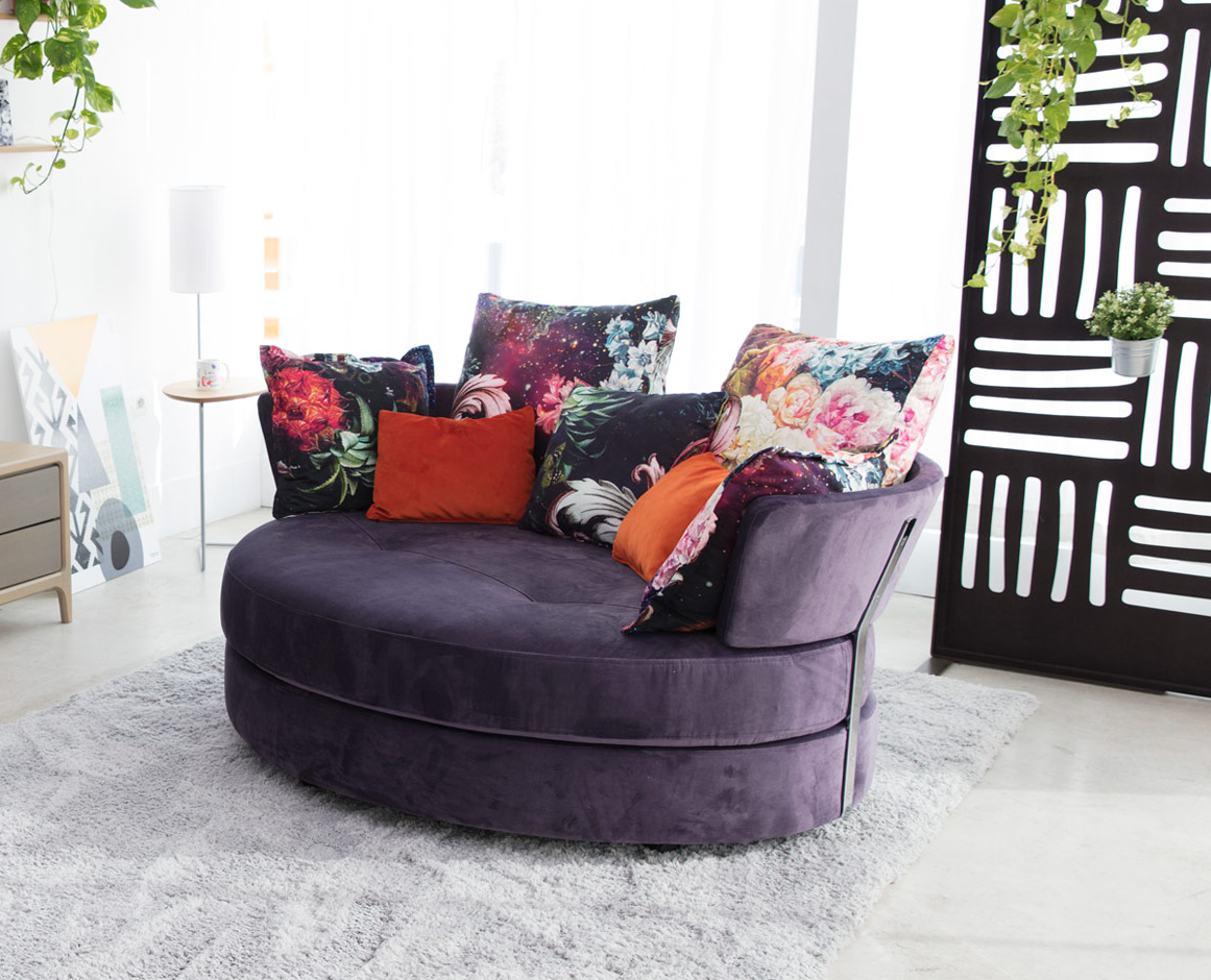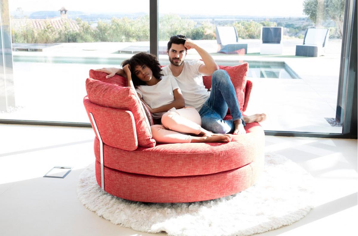 Это диван шириной 175 см и только на 30 см глубже обычного дивана. Опция поворота позволяет легко ориентировать ее в разных частях комнаты. Он украшен множеством подушек, которые обеспечивают большой комфорт. Это идеальный диван для пар, которые любят наслаждаться дома. Будет трудно найти дизайн, который принесет больше счастья в повседневной жизни.
