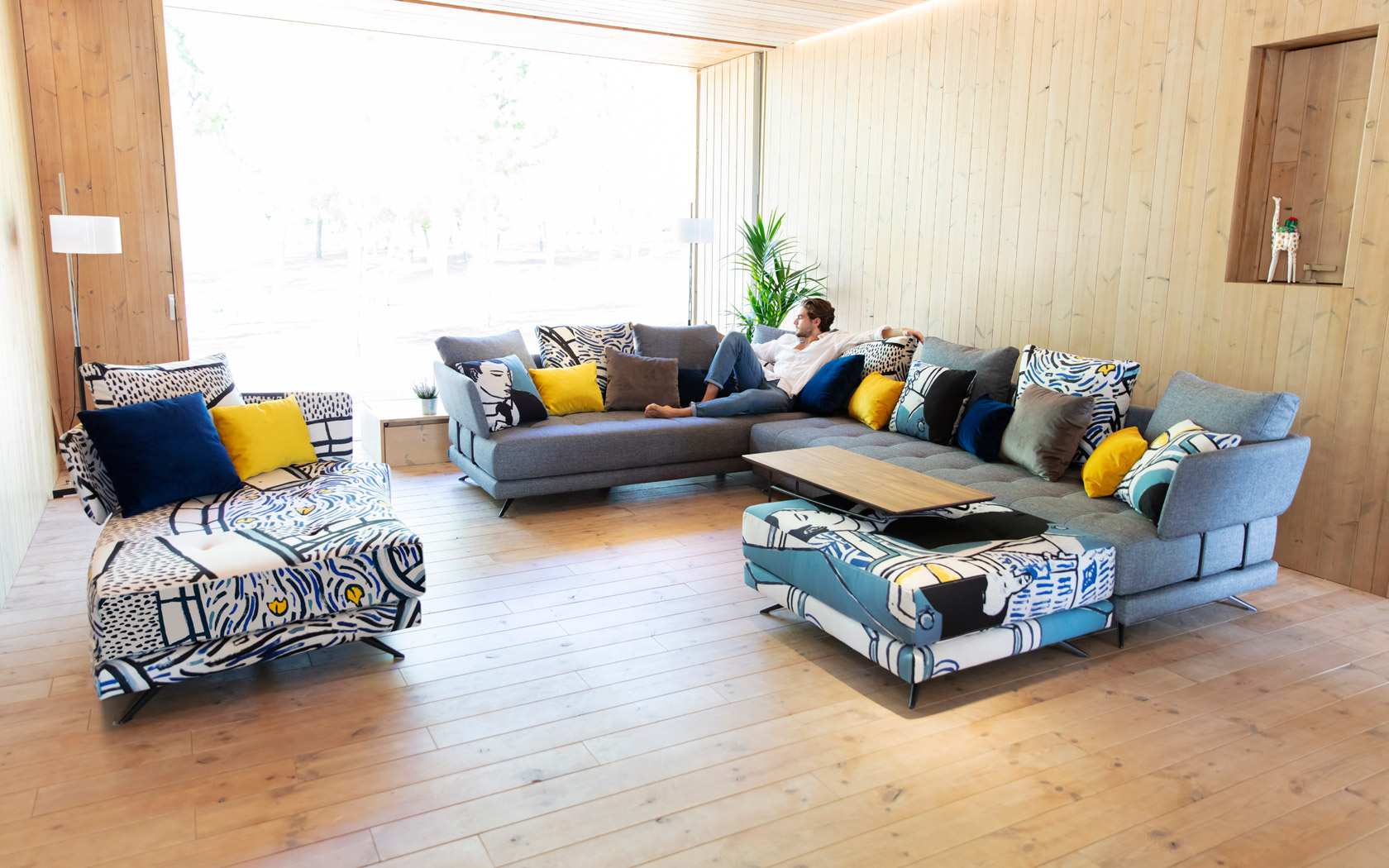 Pacific - это особенная модульная программа с потрясающей индивидуальностью. Он состоит из шести платформ разного размера, на которые вы можете в мгновение ока добавить или снять спинки с помощью действительно умной системы крепления. Таким образом, платформу для ног можно превратить в модуль или диван менее чем за минуту, без винты или инструменты. Вы можете переделать два независимых обычных дивана в современный раскладывающийся с двух сторон шезлонг.