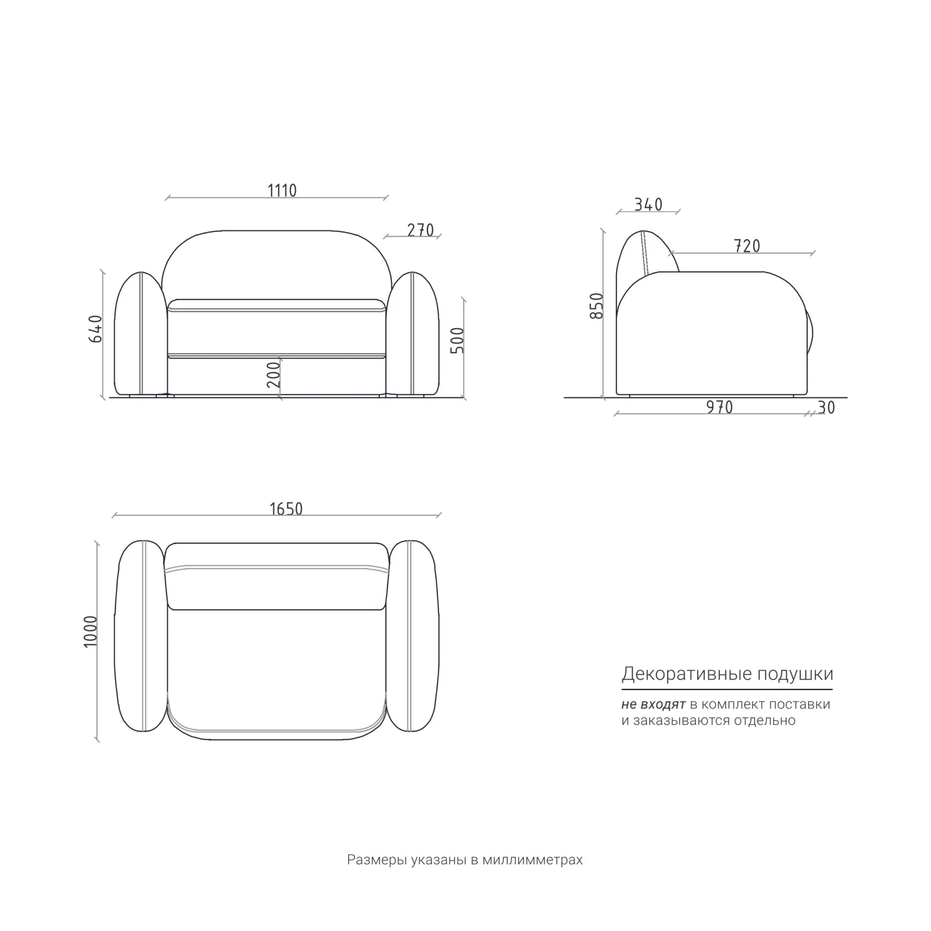 Декоративные подушки не входят в комплект поставки и заказываются отдельно.