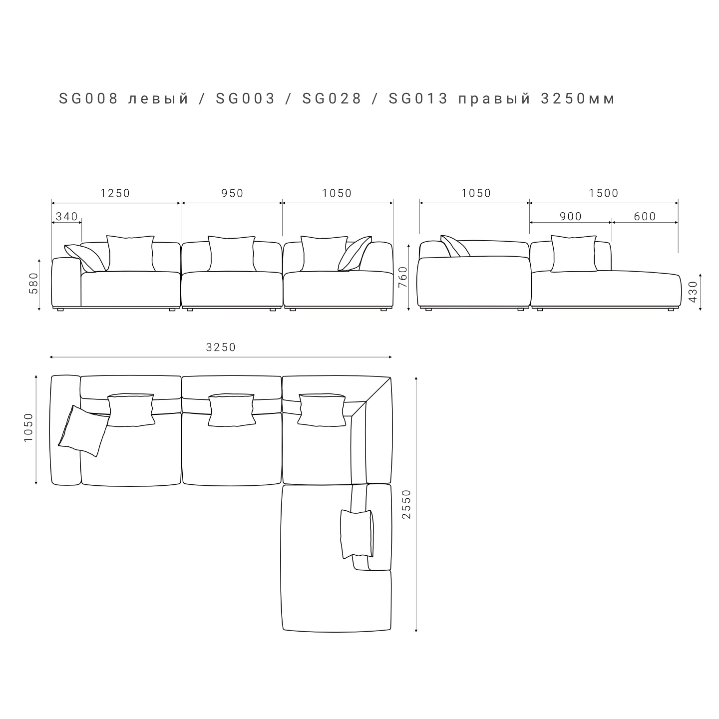 В комплекте с каждым модулем поставляется декоративная подушка в цвет основной ткани дивана.
