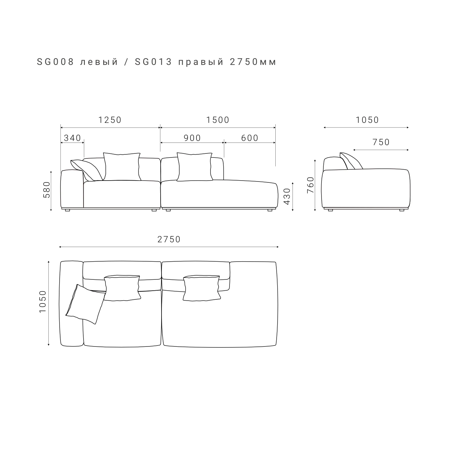 В комплекте с каждым модулем поставляется декоративная подушка в цвет основной ткани дивана.