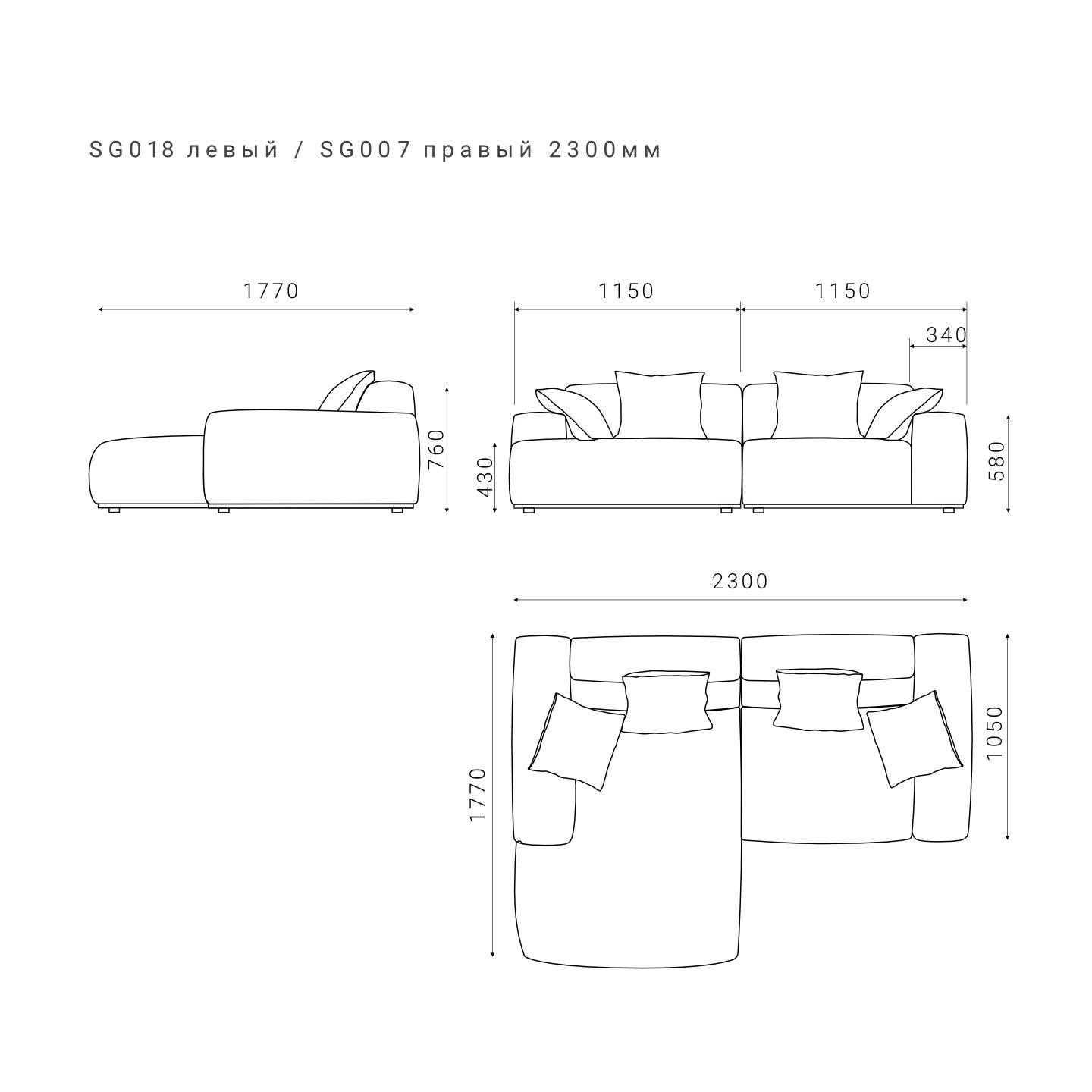 В комплекте с каждым модулем поставляется декоративная подушка в цвет основной ткани дивана.