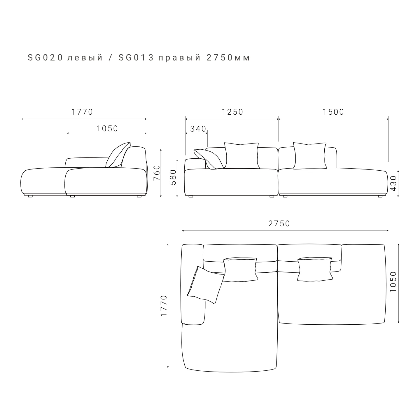 В комплекте с каждым модулем поставляется декоративная подушка в цвет основной ткани дивана.