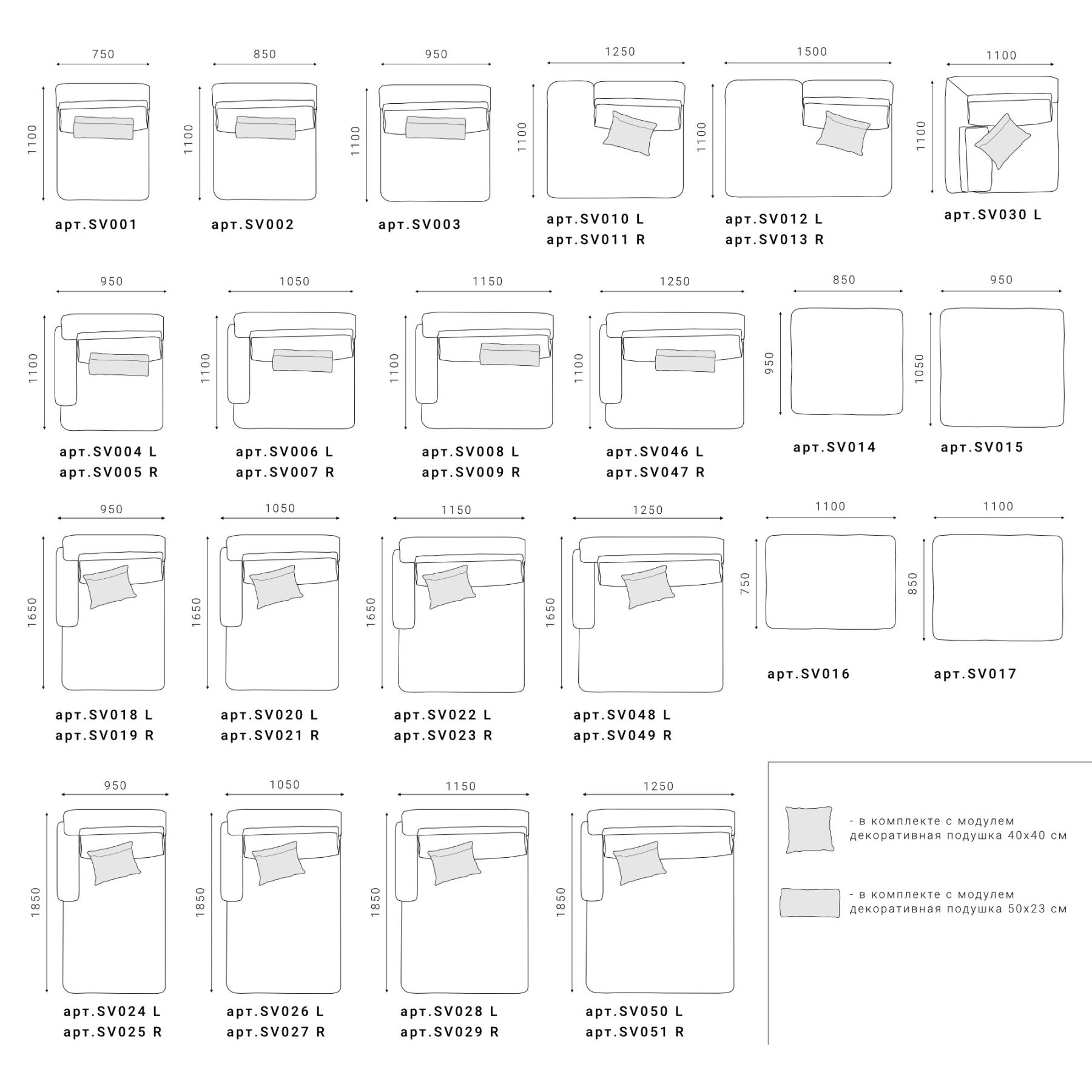 — В комплекте декоративная подушка в цвет основной ткани дивана