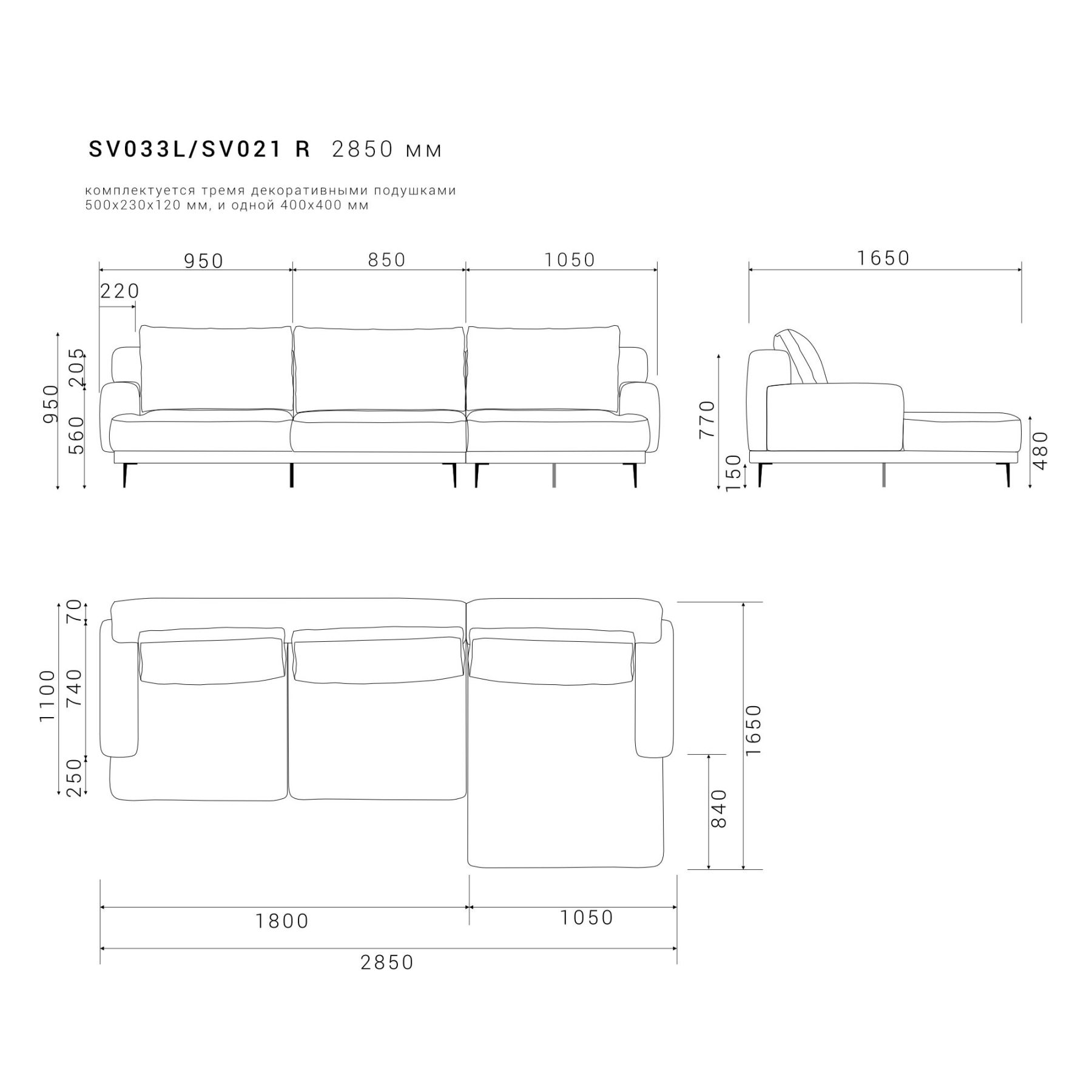 — В комплекте декоративная подушка в цвет основной ткани дивана