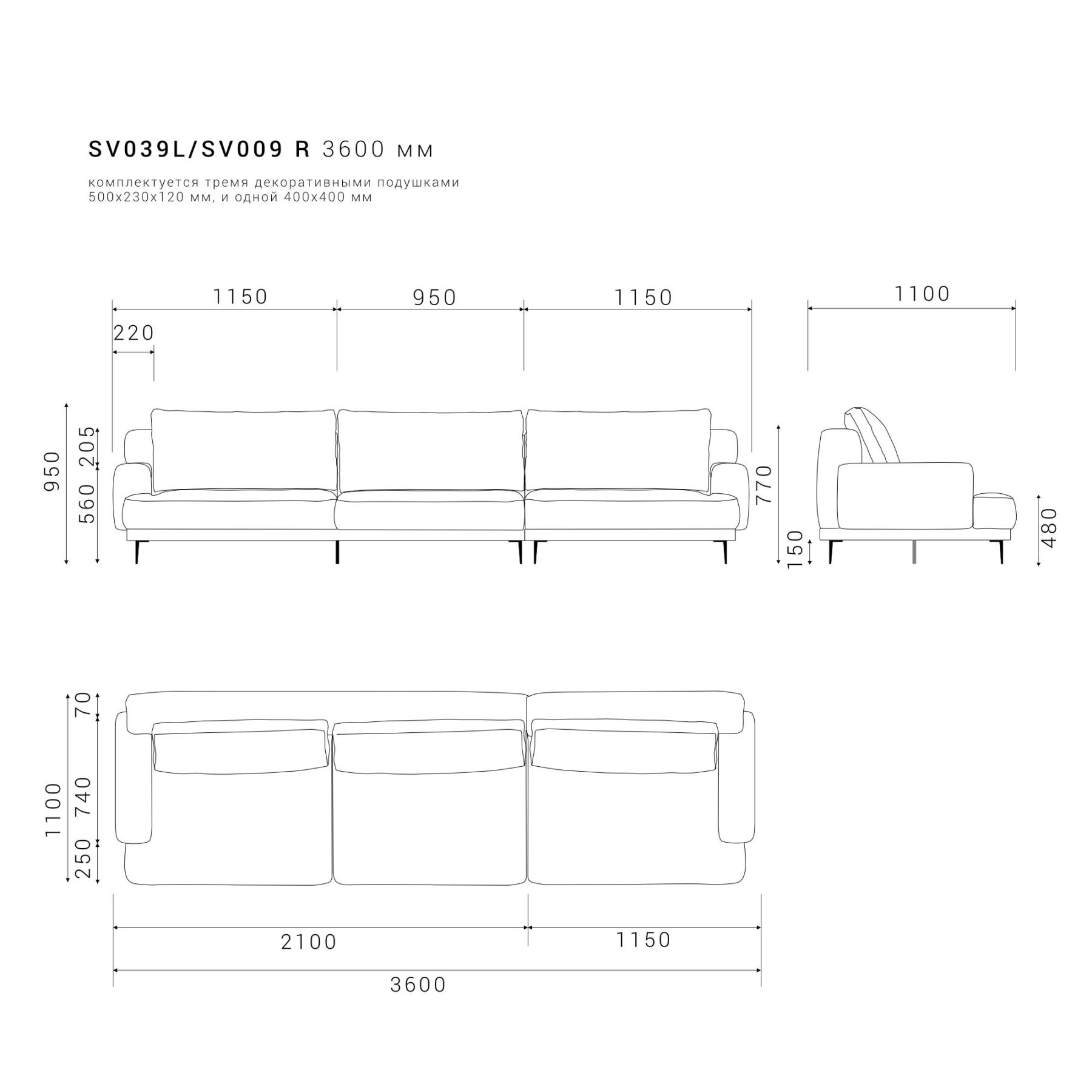 — В комплекте декоративная подушка в цвет основной ткани дивана