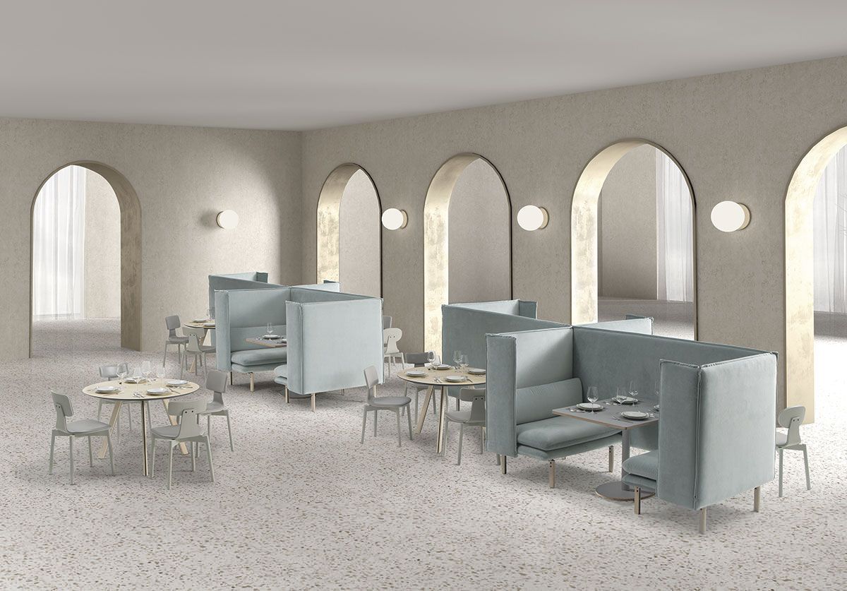 Это творение Рафы Гарсии чрезвычайно универсально. Буквальное значение этих слов прекрасно определяет функциональность этой модульной программы сидений, поскольку большое разнообразие комбинаций делает возможной практически любую конфигурацию. Конфигурации комнат позволяют эффективно распределять пространство, создавая небольшие зоны для встреч в условиях открытой планировки, без необходимости возобновлять строительные работы. Варианты скамеек могут создавать кабинки в ресторанах или кафе.