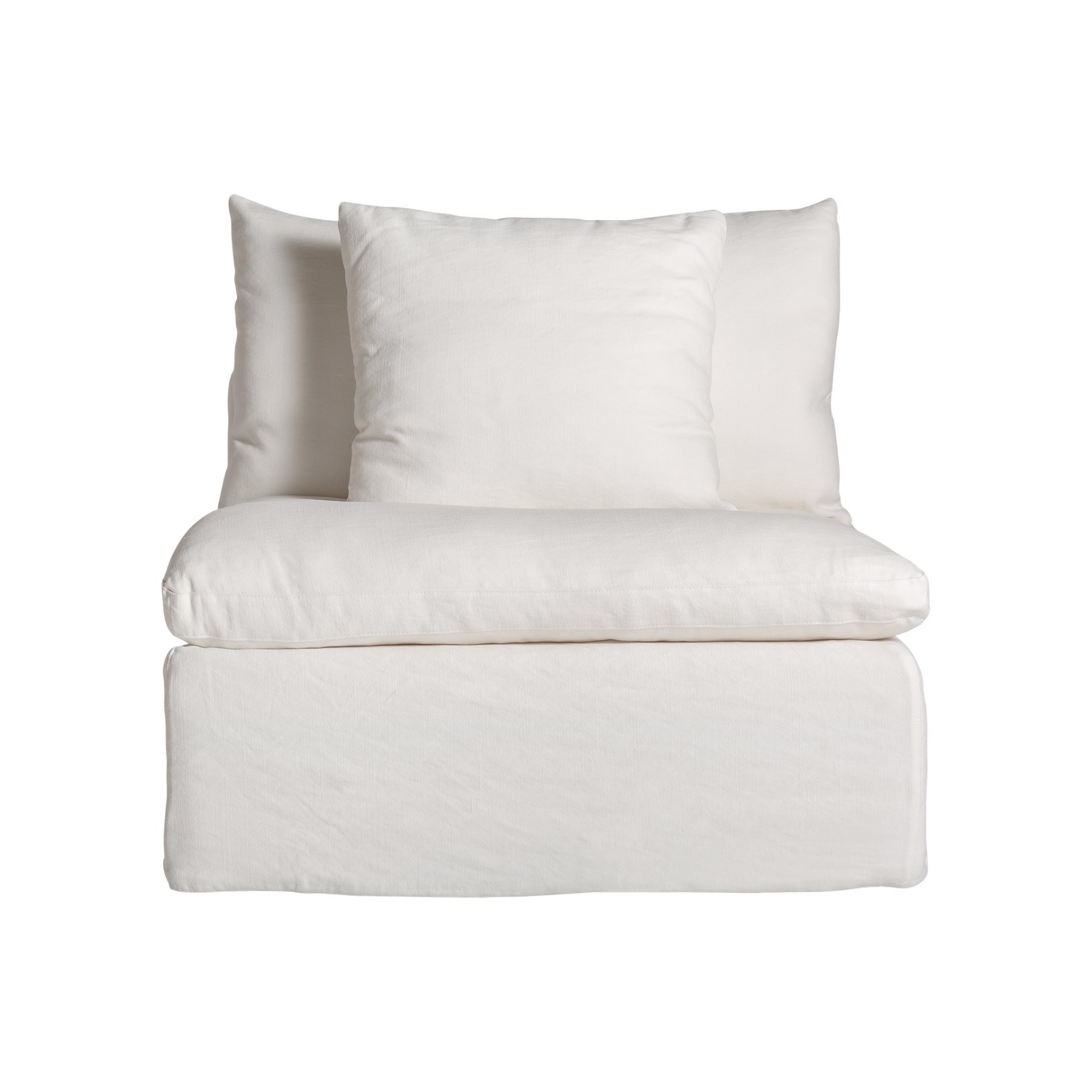 Модульный диван Agde белого цвета в стиле арт-деко. Изготовлен из льна в сочетании с хлопком и поролоном. Изделие съемное, чехол съемный. Совместим с: 35111,35113,35114.
