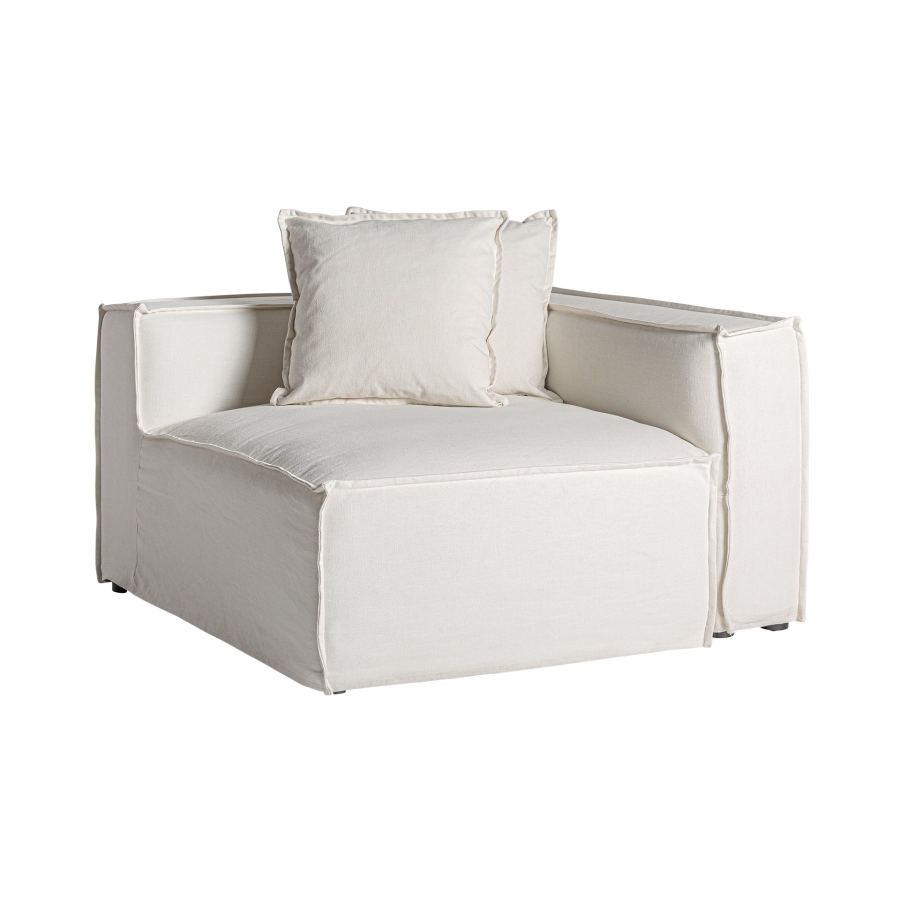 Модуль углового дивана правый виролле, белый однотонный цвет, колониальный стиль. Изготовлен из льна в сочетании с хлопком и поролоном. Изделие съемное. Совместим с: 36089.