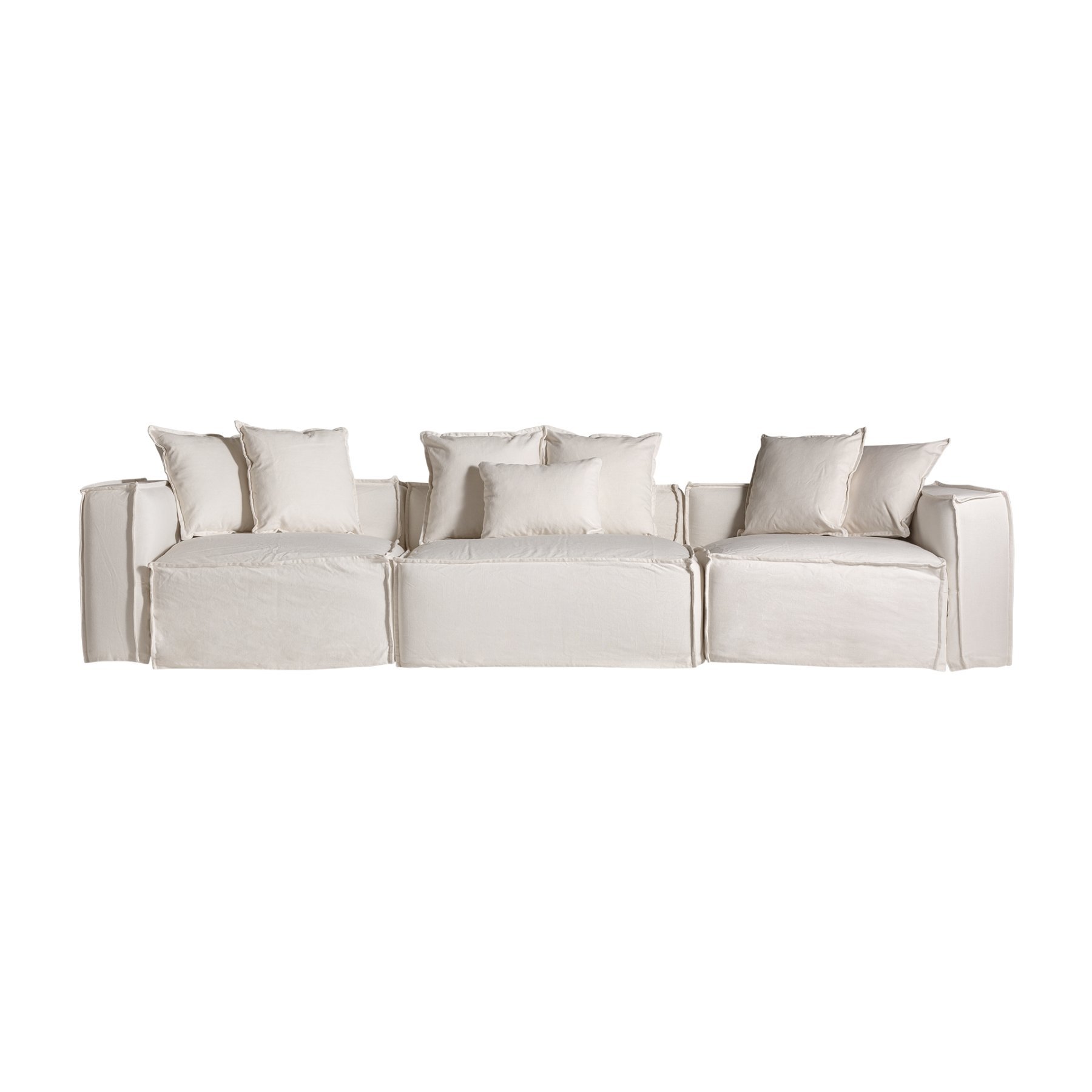 Модульный диван Virolle белого цвета в стиле арт-деко. Изготовлен из льна в сочетании с хлопком и поролоном. Съемное изделие.
