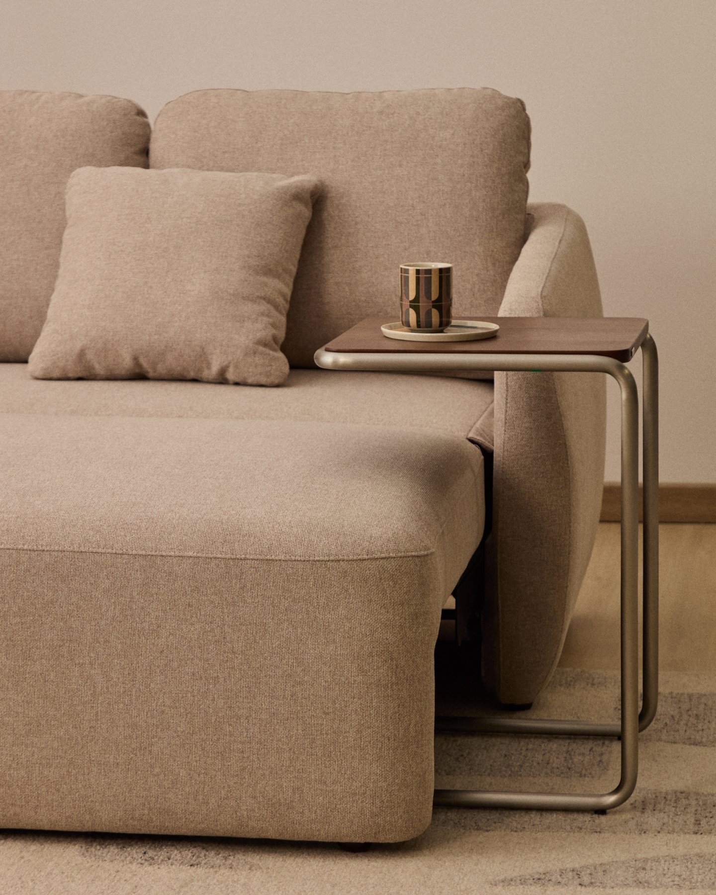 Диван-кровать Laira отличается обивкой из высококачественного, крупнозернистого шенилла, очень мягкого на ощупь и износостойкого. Система Y-open позволяет быстро и легко превратить диван в удобную кровать размером 150 x 190 см благодаря синхронизированному механизму открывания. В разложенном виде его также можно использовать как сплошной шезлонг. Пенополиуретан средней жесткости (28 кг/м³) обеспечивает сиденье средней упругости, предлагая баланс комфорта и поддержки.