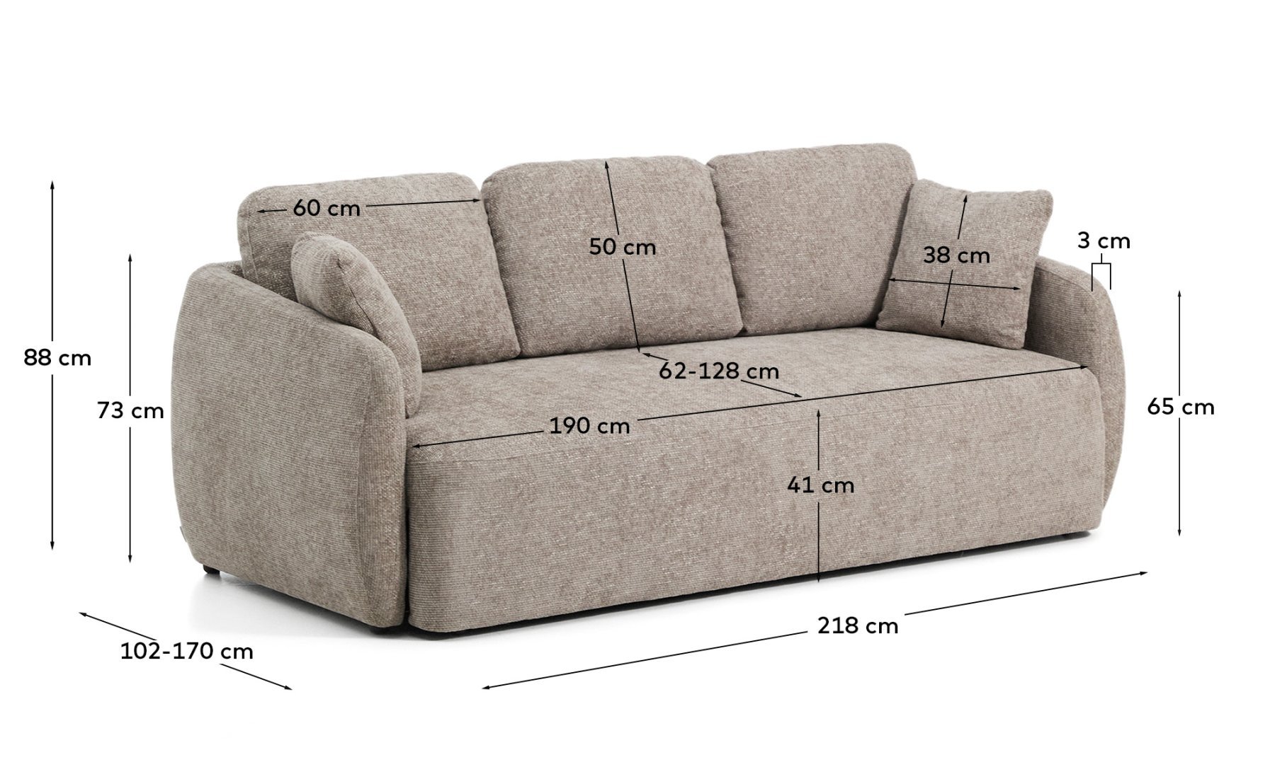 Диван-кровать Laira выделяется своей обивкой из высококачественного, крупнозернистого шенилла, очень мягкого на ощупь и износостойкого. Система Y-open позволяет быстро и легко превратить диван в удобную кровать размером 150 x 190 см благодаря синхронизированному механизму открывания. В разложенном виде его также можно использовать как сплошной шезлонг. Среднеплотный пенополиуретан 28 кг/м³ обеспечивает среднюю жесткость сиденья, предлагая баланс комфорта и поддержки. Подушки спинки имеют съемные чехлы и наполнены волокном и перфорированным пенополиуретаном, что обеспечивает обволакивающий комфорт. Внутренняя конструкция выполнена из массива сосны и фанеры. Массив сосны сертифицирован по стандарту FSC™ 100% с учетом ответственной модели лесопользования, а фанера сертифицирована по стандарту FSC Mix Credit, то есть это материал, изготовленный из смеси материалов из сертифицированных FSC лесов и древесины, контролируемой FSC.