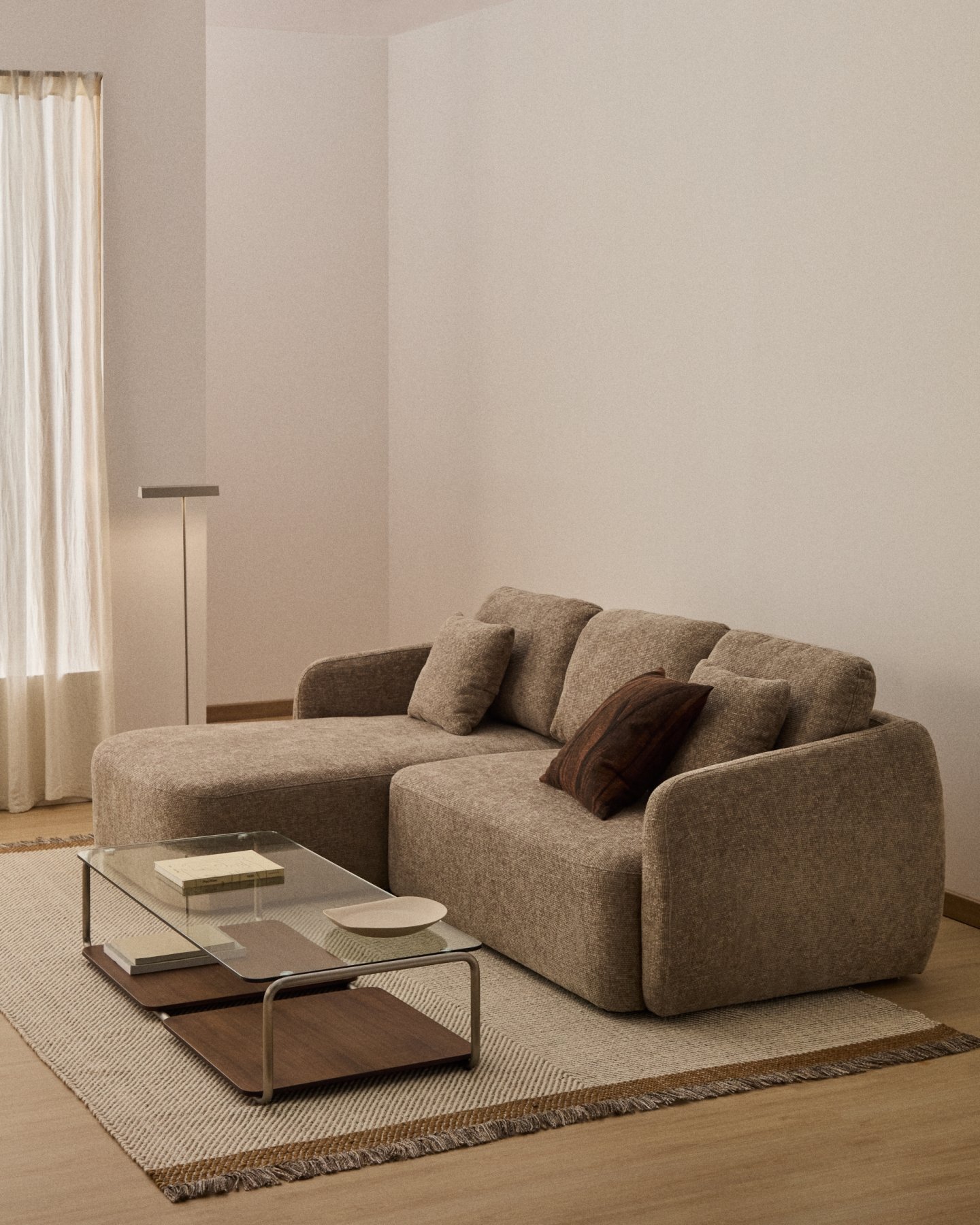 иван-кровать Laira отличается обивкой из высококачественного, крупнозернистого шенилла, очень мягкого на ощупь и износостойкого. Система Y-open позволяет быстро и легко превратить диван в удобную кровать размером 150 x 230 см в самой широкой точке благодаря синхронизированному механизму открывания. В разложенном виде его также можно использовать как сплошной шезлонг. Среднеплотный пенополиуретан 28 кг/м³ обеспечивает среднюю жесткость сиденья, предлагая баланс комфорта и поддержки.