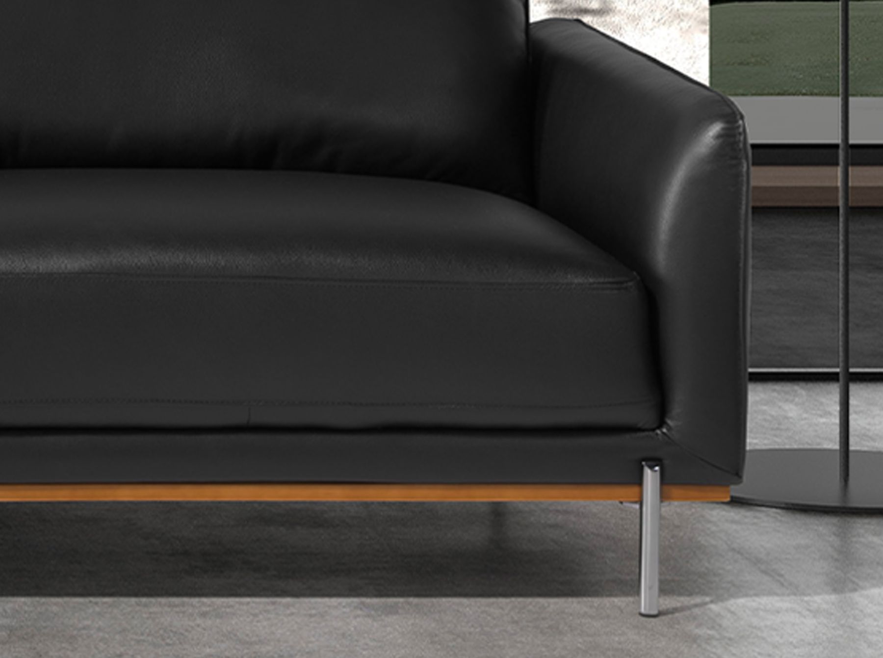 5-местный левый диван-шезлонг с современным дизайном, обитый черной воловьей кожей. Благодаря своему стилю, а также отделке из пропаренного бука цвета ореха и ножкам из темной нержавеющей стали этот диван привнесет в ваш дом нотку авангарда и элегантности, которую вы ищете.