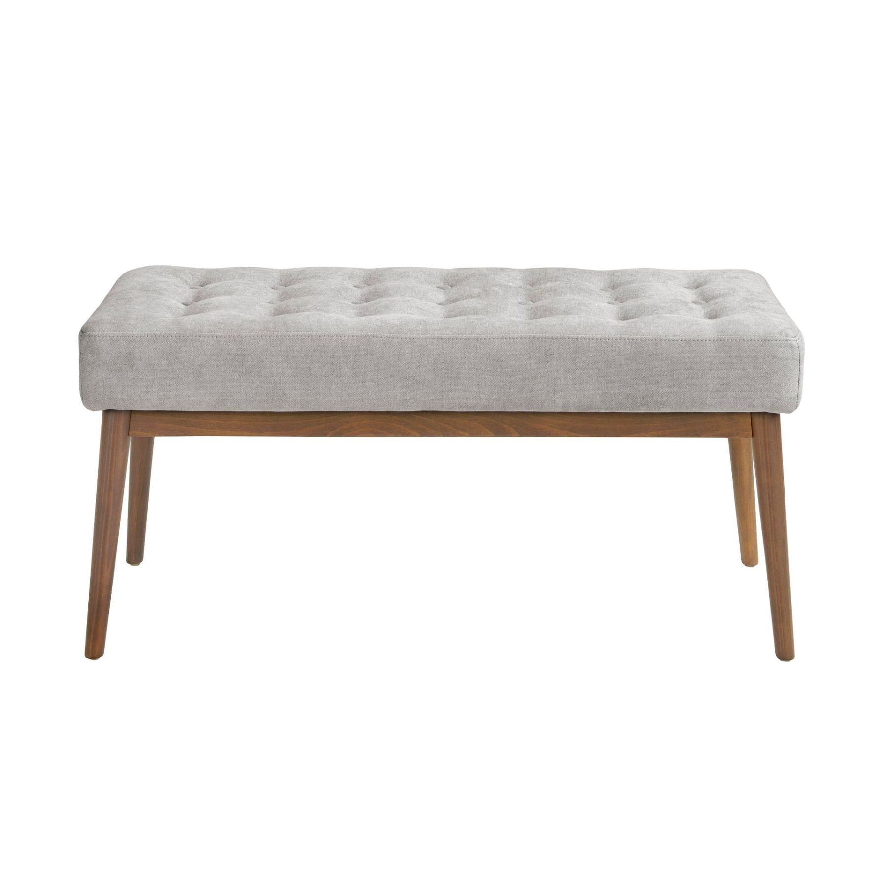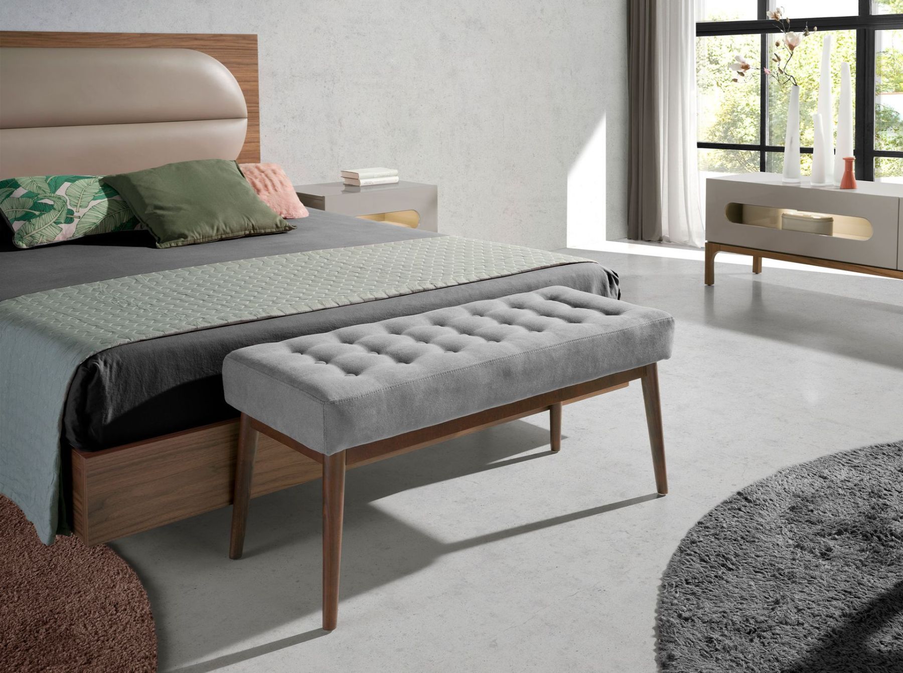 Табурет с обивкой из темно-серой ткани и деревянными ножками орехового цвета. Скамейка современного дизайна, которая придаст вашему дому ощущение тепла и элегантности, которое вы ищете.