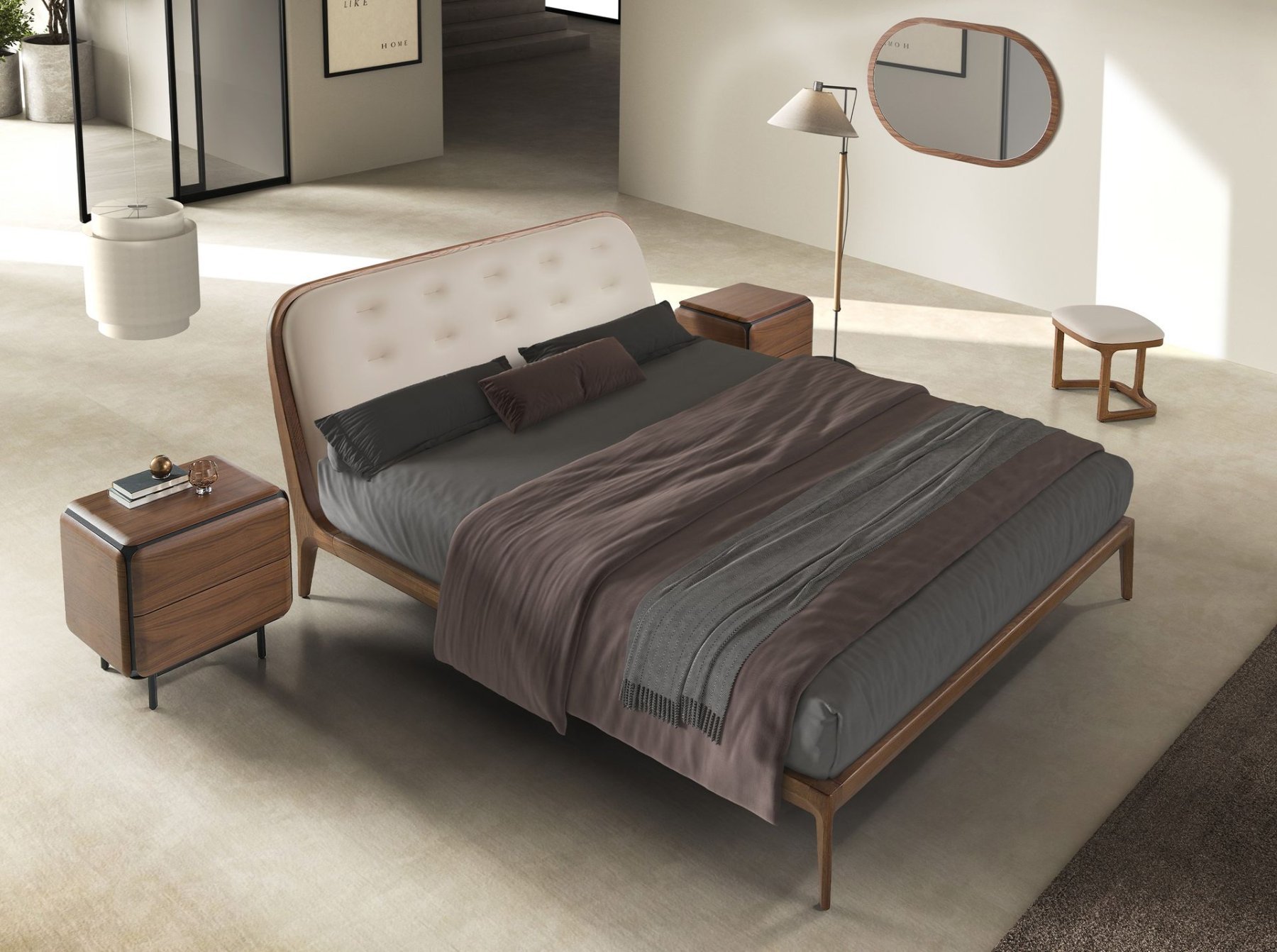 Современная дизайнерская скамья с сиденьем, обитым искусственной кожей песочного цвета. Ее деревянные ножки цвета ореха, сочетающие в себе авангардный и вневременной стиль, сделают ее незаменимым элементом вашей спальни. Эта скамья от Angel Cerdá сочетает в себе уникальный и индивидуальный стиль бренда с максимальным комфортом и устойчивостью благодаря высокому качеству обивки и оригинальной конструкции ножек.