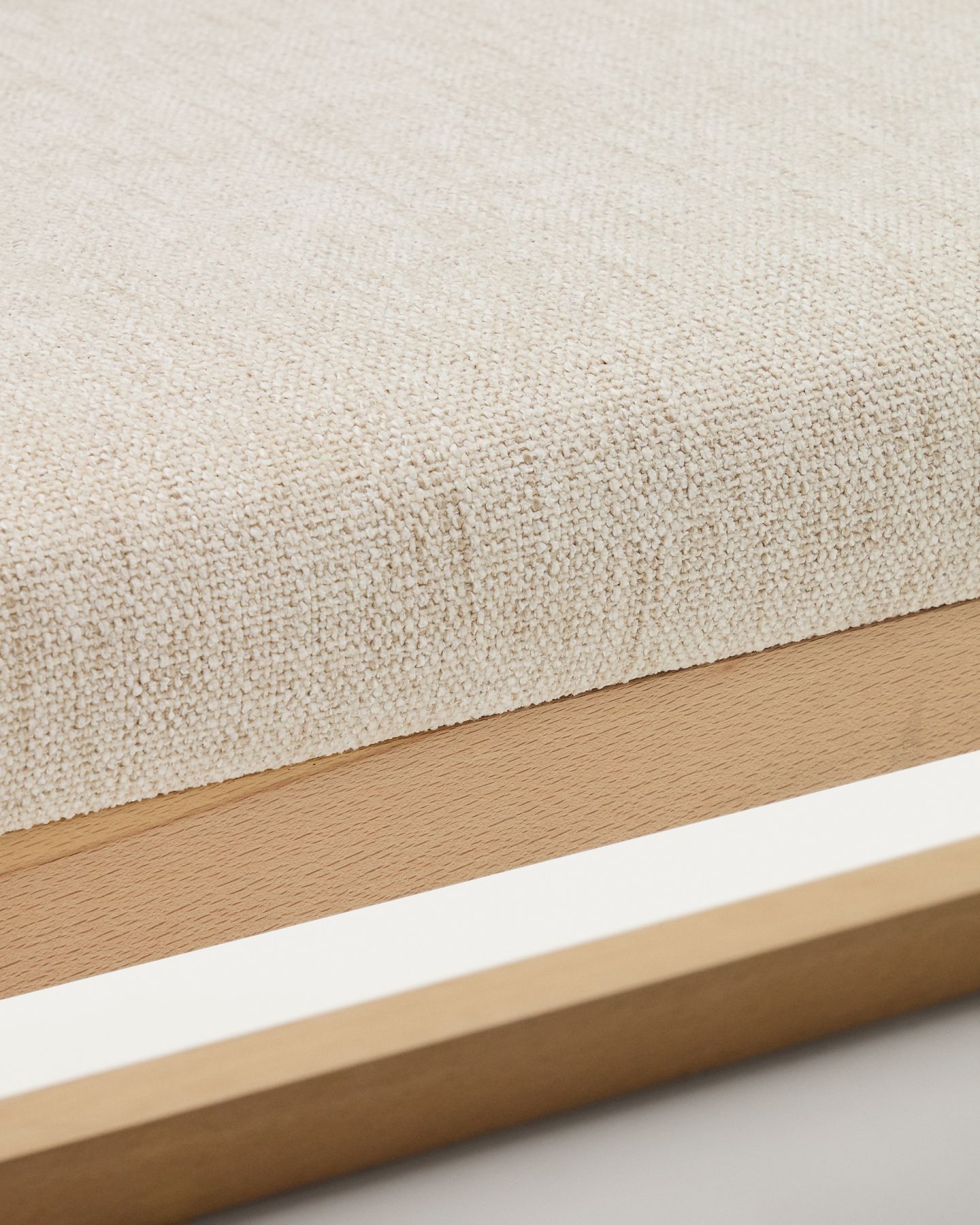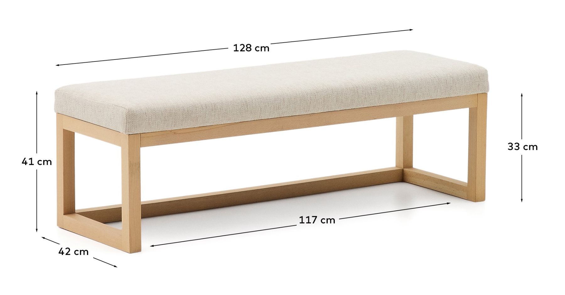 Скамья Loya выделяется своим вневременным дизайном и тщательно подобранным сочетанием материалов, призванных добавить стиль и комфорт любому помещению. Обивка выполнена из высококачественного бежевого шенилла с защитой от пятен. Мягкая и прочная текстура скамьи сохраняется безупречно даже при ежедневном использовании. Каркас из бука обеспечивает тепло и прочность, а сиденье, наполненное пенополиуретаном плотностью 25 кг/м³, обеспечивает комфорт и долговечность. Войлочные вставки в ножках защищают пол.