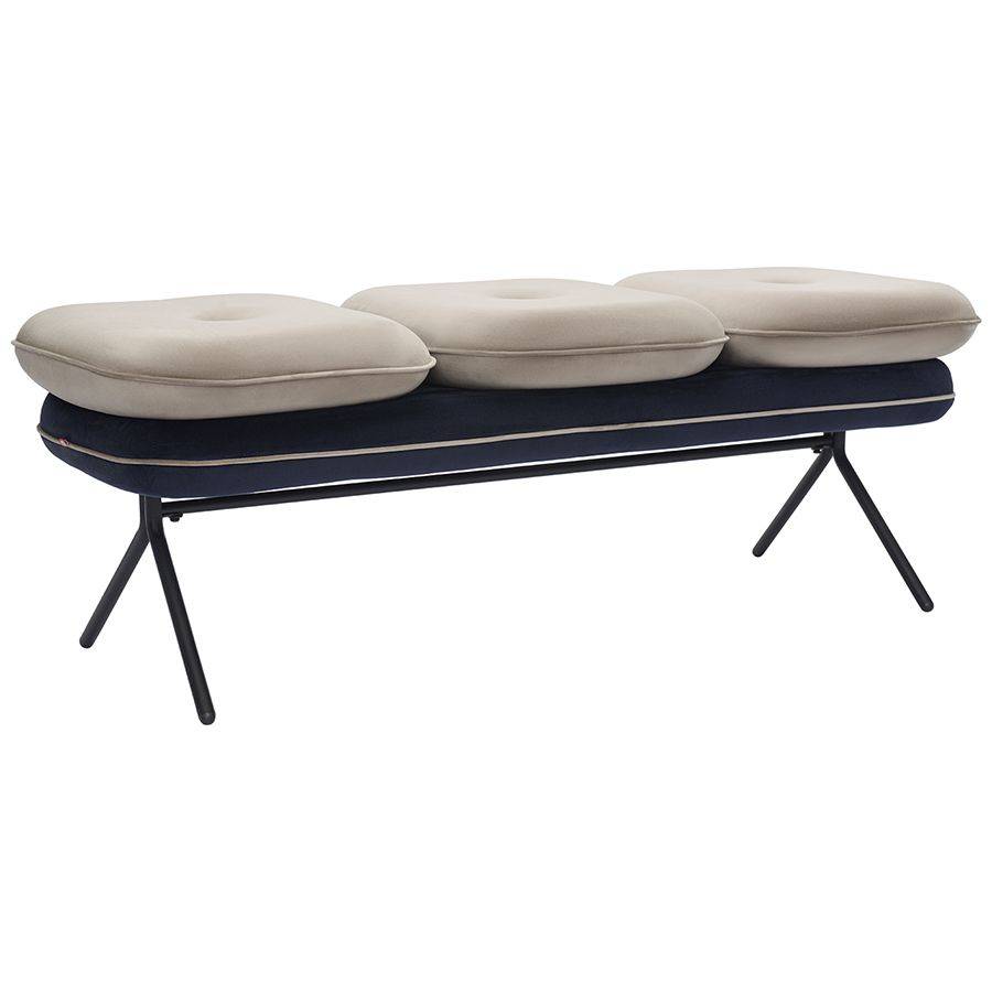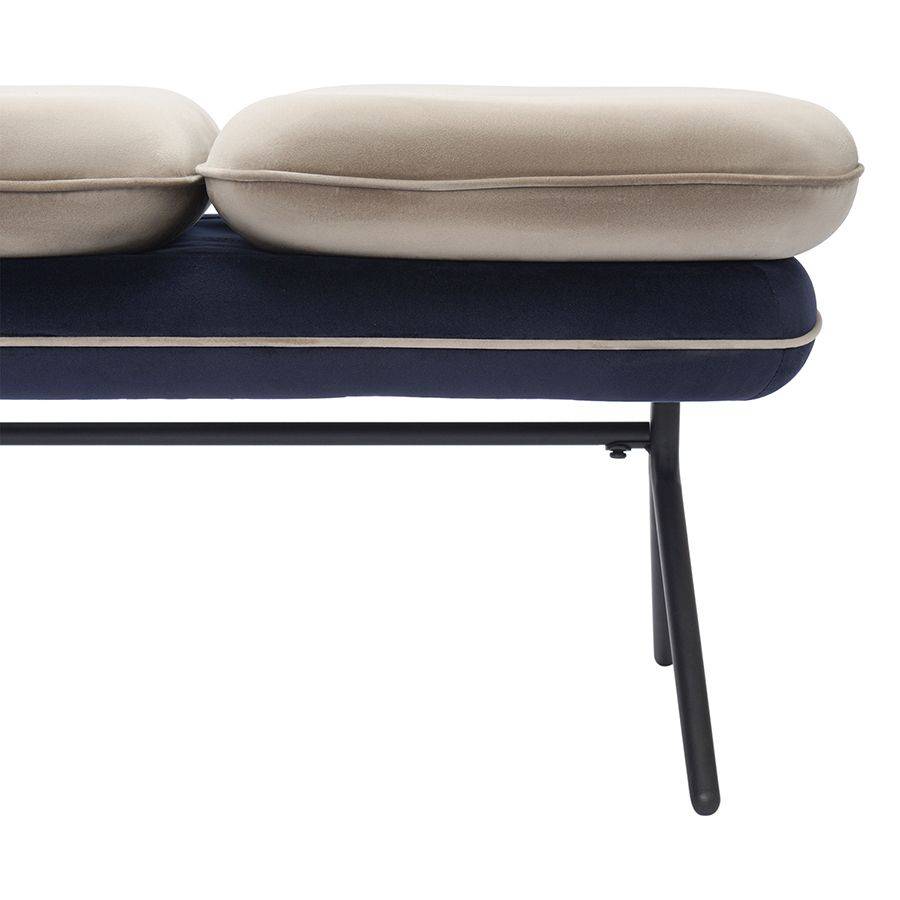 Материалы: 100% полиэстер, пенополиуретан, фанера, железо. Размеры: 123,9х43,1х42,9 см. Цвет: бежевый/темно-синий.