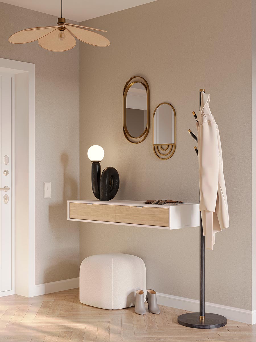 Малогабаритными считаются светильники, текстиль, декор. Среднегабаритными — пуфы, вешалки, стулья. Крупногабаритными — комоды, стеллажи, шкафы.