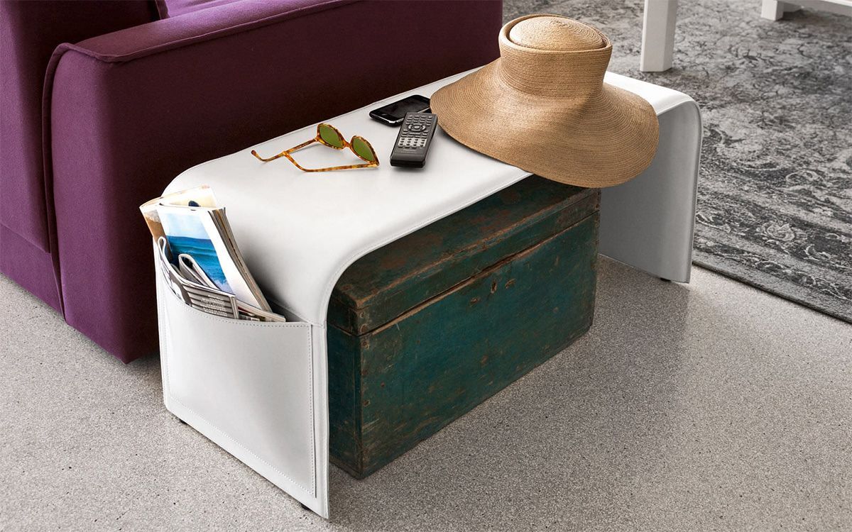 Скамья Shape от итальянского бренда Calligaris. Скамья с боковыми карманами для журналов и газет. Выполнена из металла, обтянутого в натуральную кожу.
