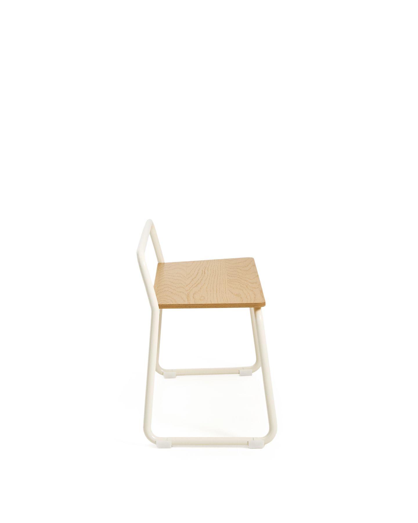 Превью Скамейка из ясеневого шпона Tinn с бежевой металлической конструкцией, 75 см