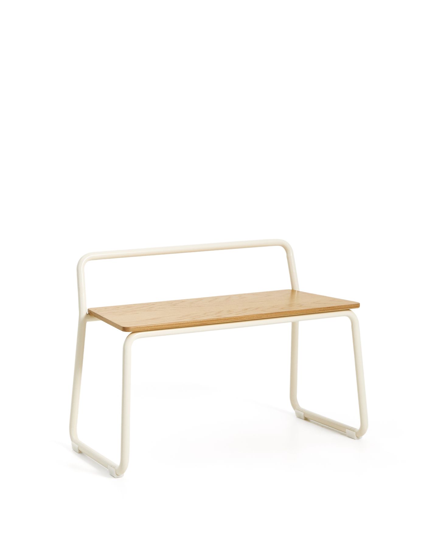 Скамейка из ясеневого шпона Tinn с бежевой металлической конструкцией, 75 см