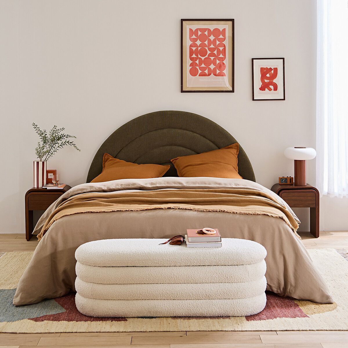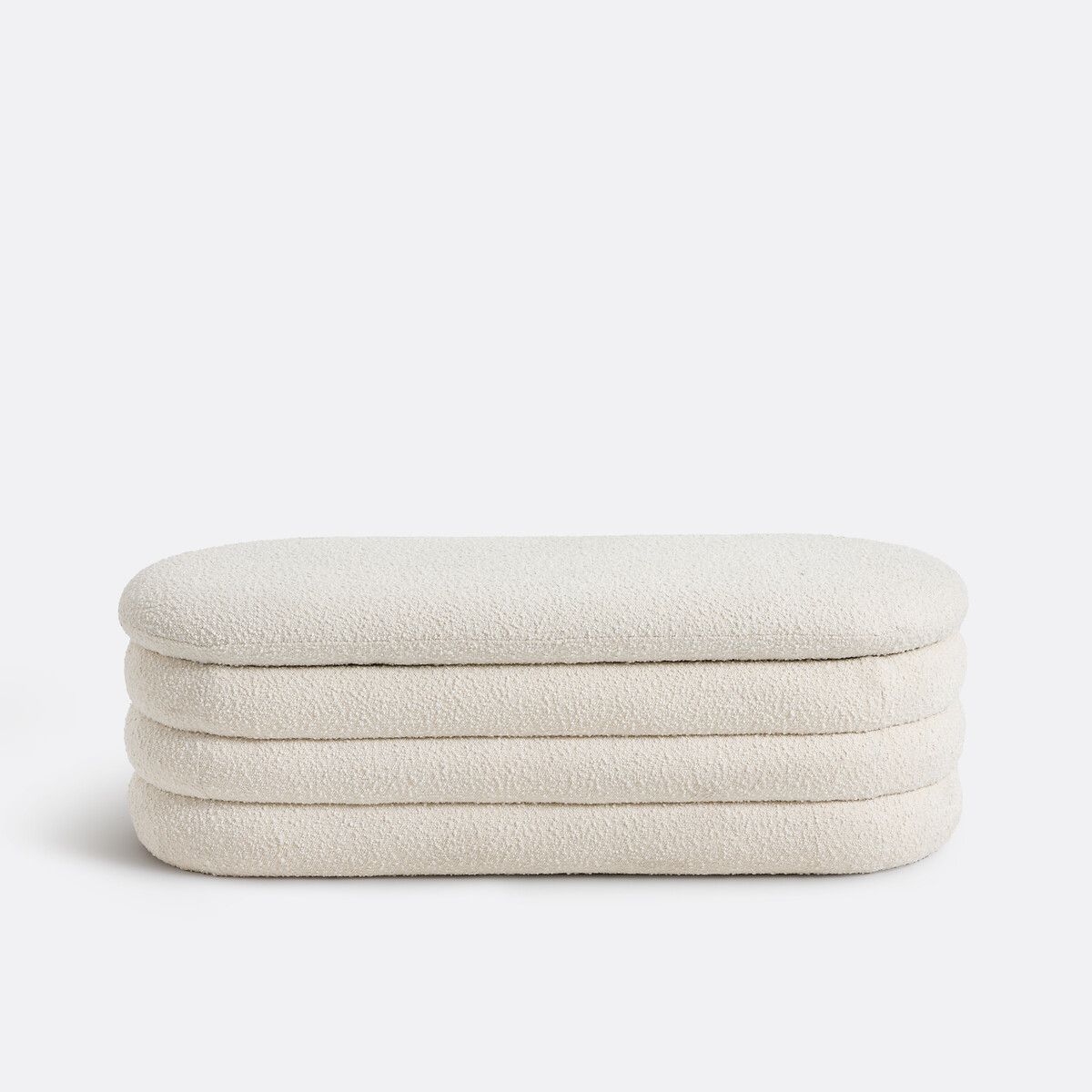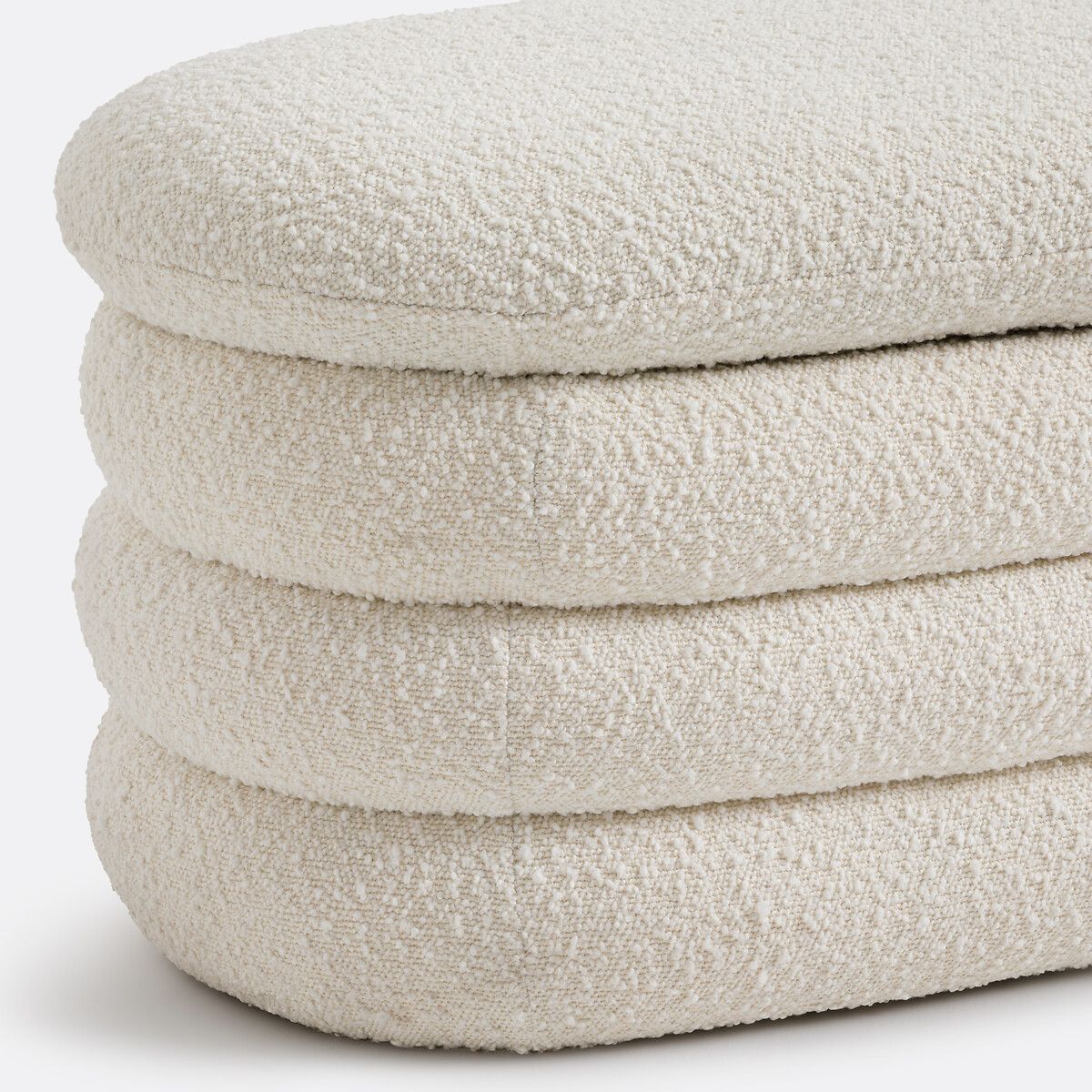 Аутентичный дизайн в стиле 70-х. Обивка из ткани букле. Видимый горизонтальный шов для эффекта обивки. Мягкие скругленные углы Pilou внесут тепла и уюта в ваш интерьер.