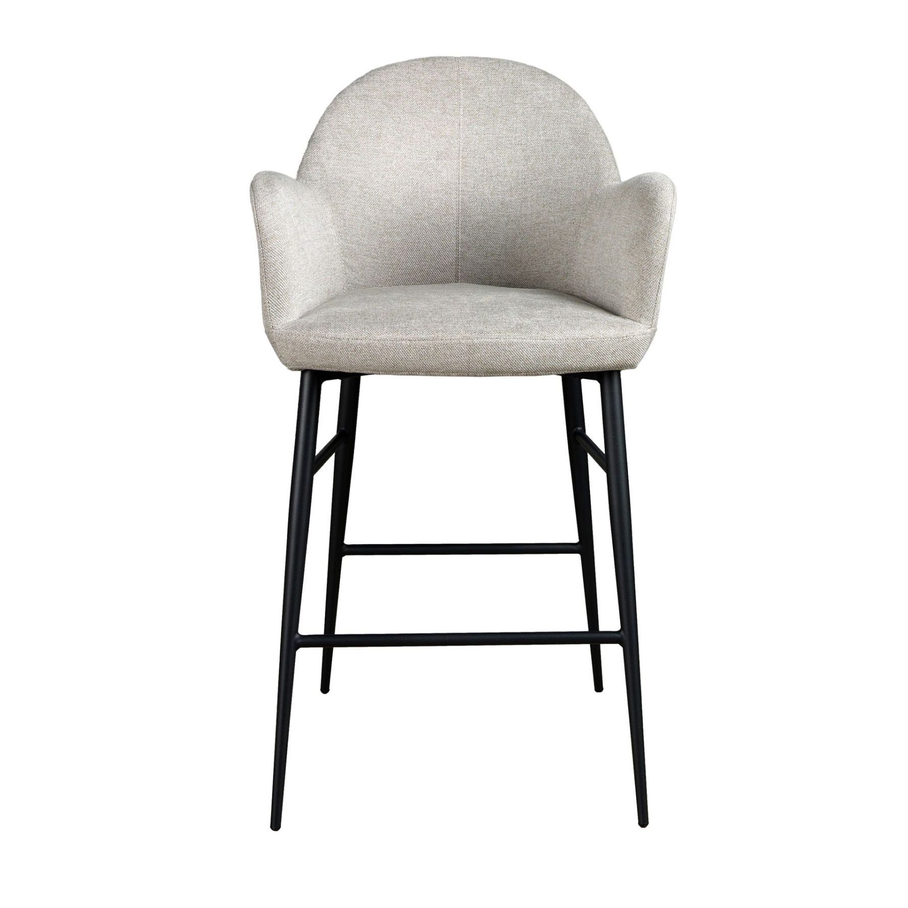 Табурет с подлокотниками в современном дизайне с сиденьем и спинкой, обитыми светло-серой тканью. Его ножки из нержавеющей стали, окрашенные в черный эпоксидный цвет, с авангардным, но вневременным стилем сделают его обязательным предметом на вашей кухне или в столовой. Этот табурет от Angel Cerdá сочетает в себе уникальный и индивидуальный стиль бренда, а также высочайший комфорт и устойчивость благодаря высокому качеству обивки и оригинальной конструкции ножек.