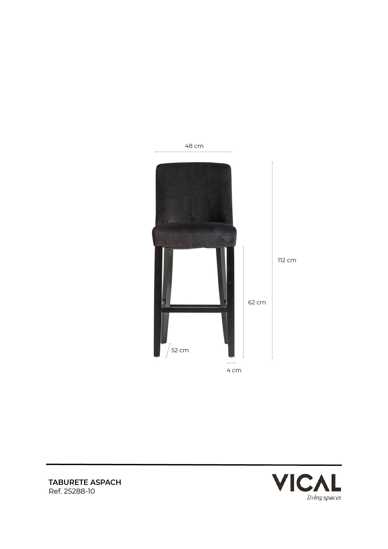 Табурет Aspach черного цвета в современном стиле. Изготовлен из каучукового дерева в сочетании с бархатом и деревом ДМ. Съемное изделие.