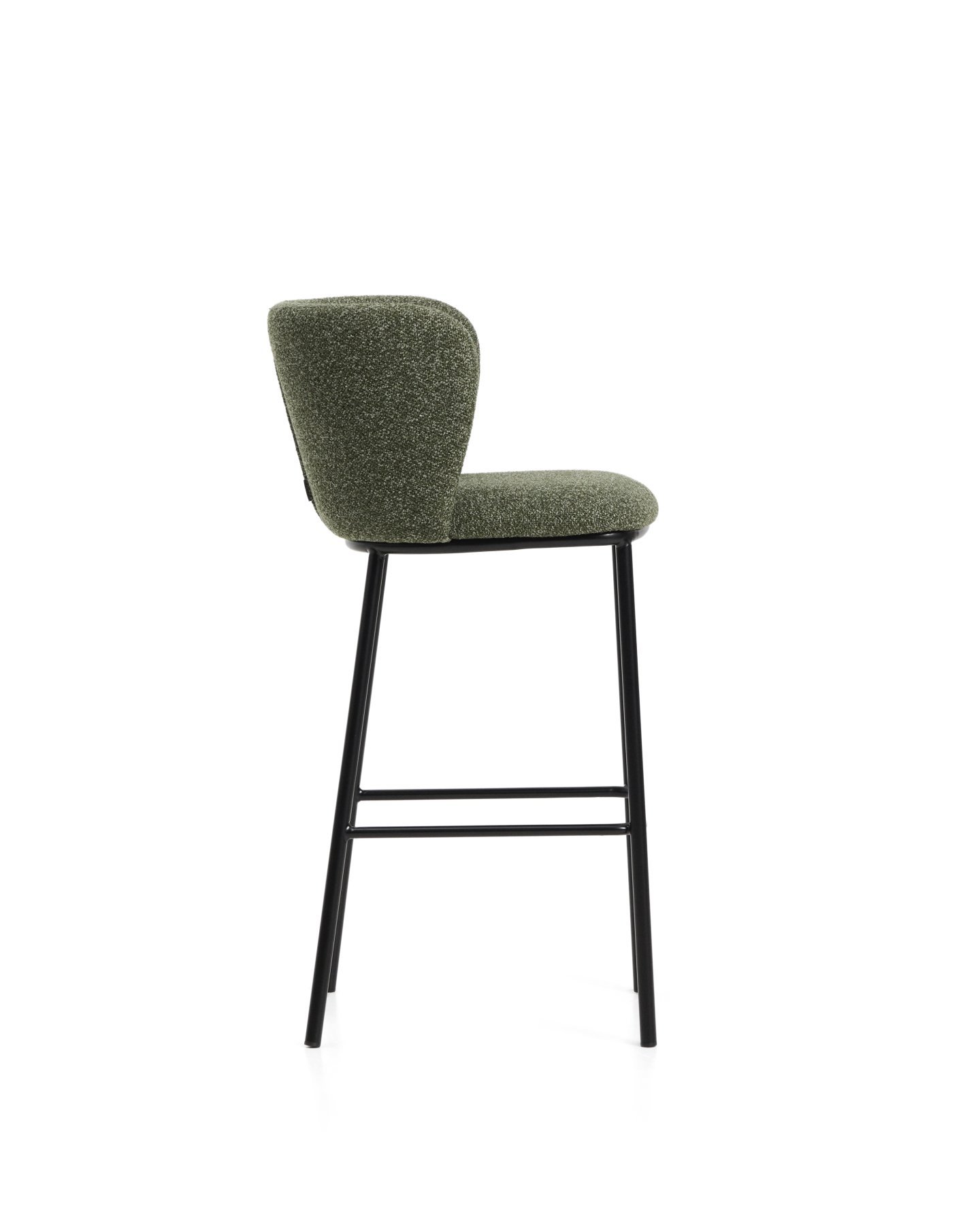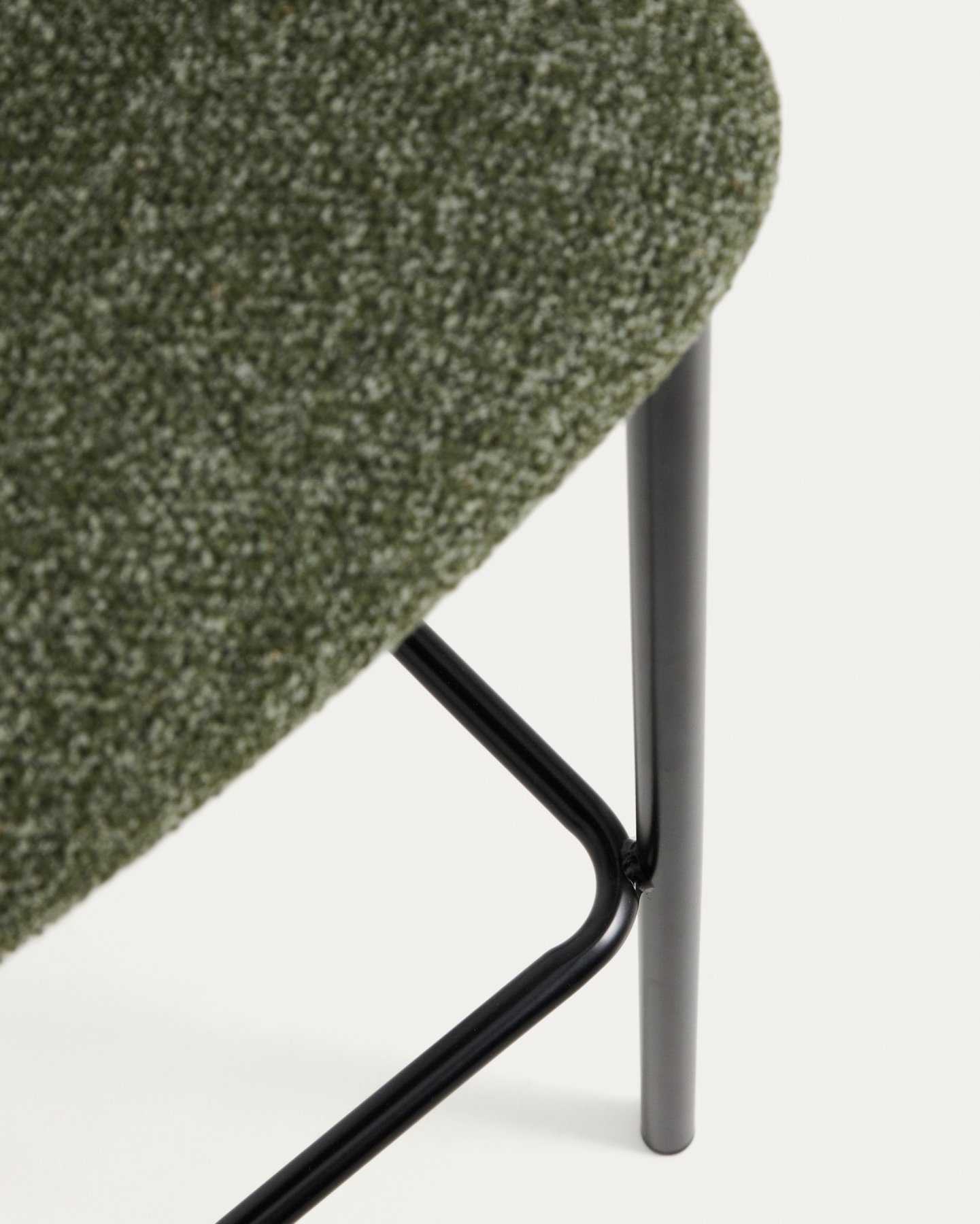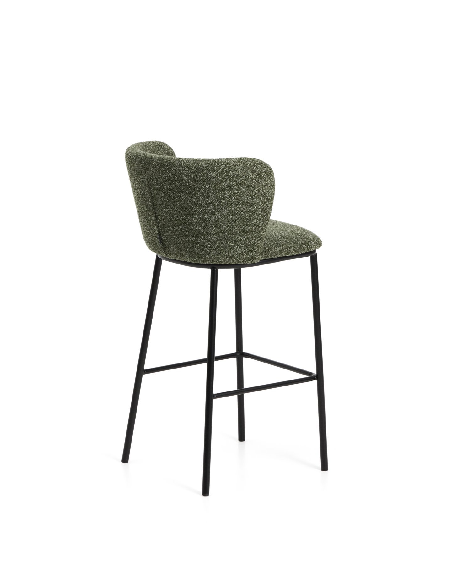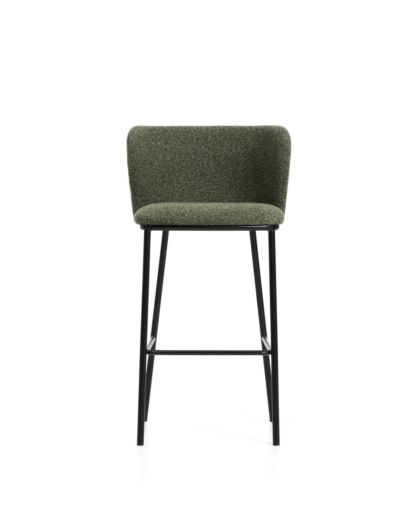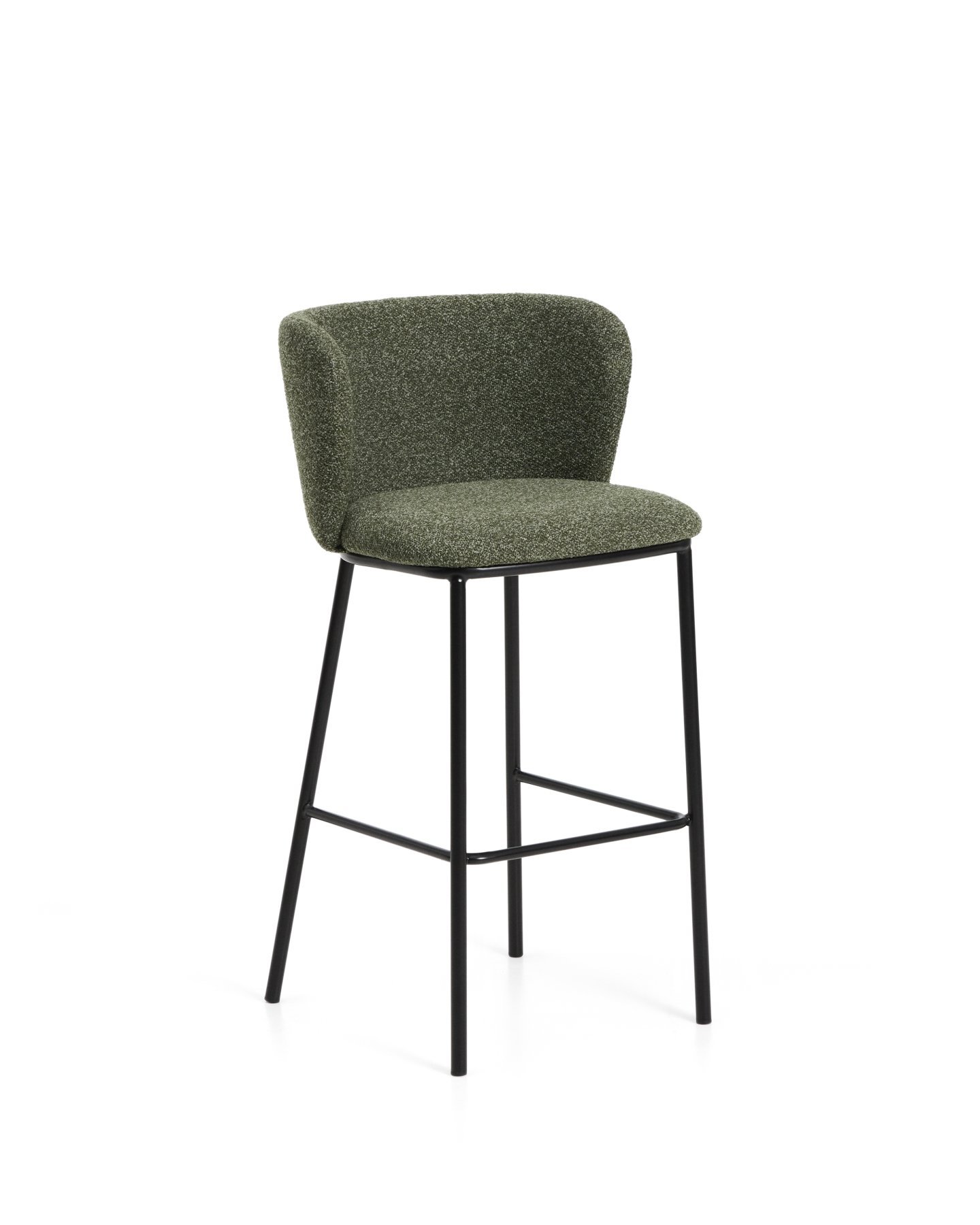 - Барный стул Ciselia из темно-зеленого шенилла с ножками из черной стали