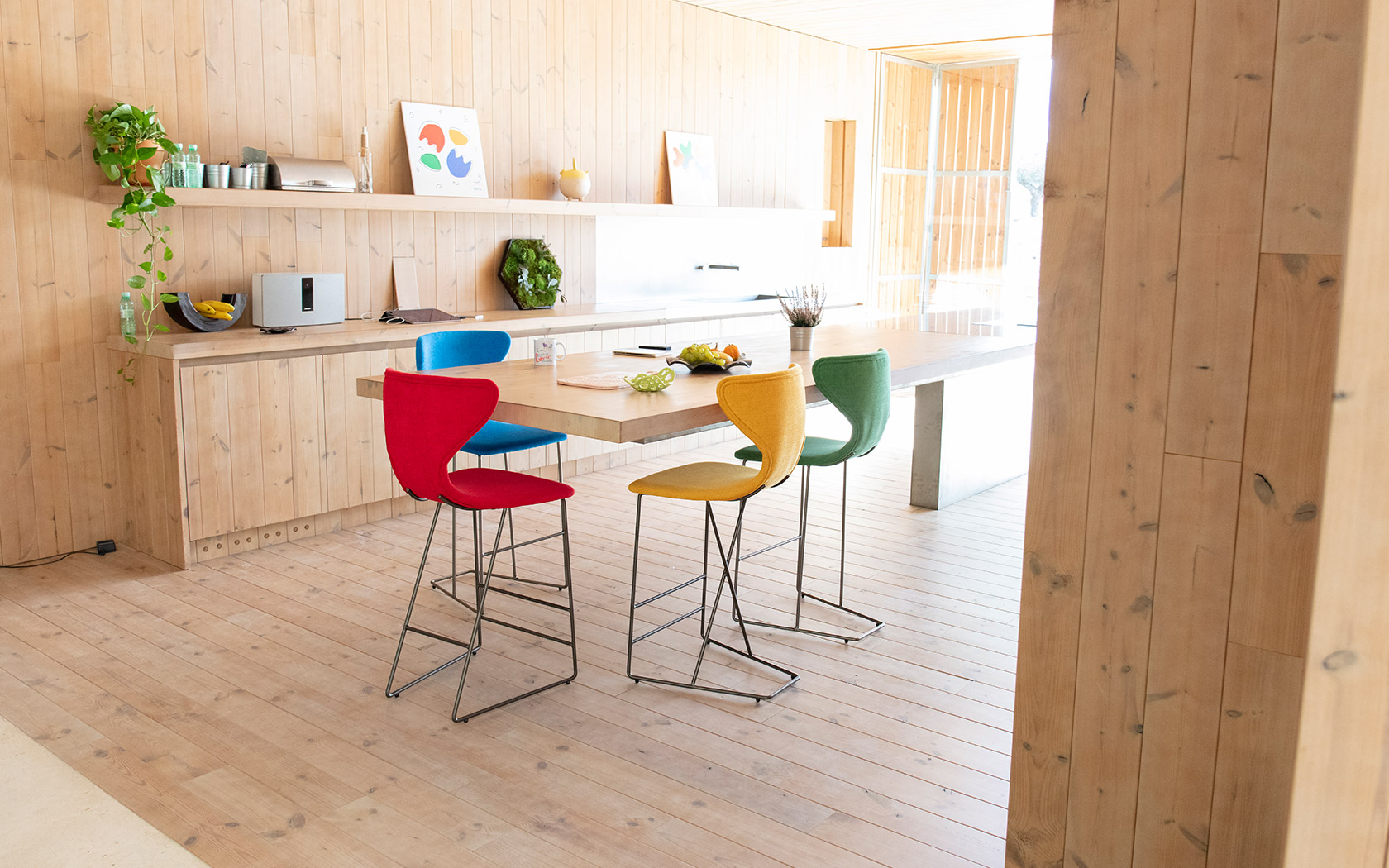 Имея это в виду, мы создали Helga с деревянными ножками, а также Marlon, Denzel и Burt с металлическими ножками, все они доступны с 3-мя высотами сидений, 45 см (версия для кресла), 65 и 75 см (версия для табуретки). Они выделяются благодаря своему эргономичному дизайну и великолепному комфорту. Модели Denzel, Marlon и Burt в версии для стула (высота сиденья 45 см) могут использоваться в качестве самостоятельных декоративных элементов благодаря их металлическим ножкам без использования в качестве стульев для столовой.