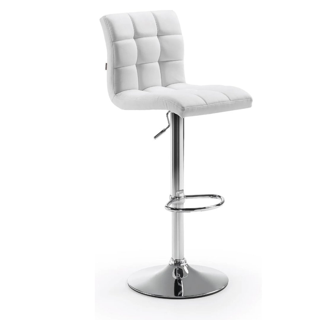 Барный стул из синтетической кожи. Шарнирная подъемная хромированная ножка..