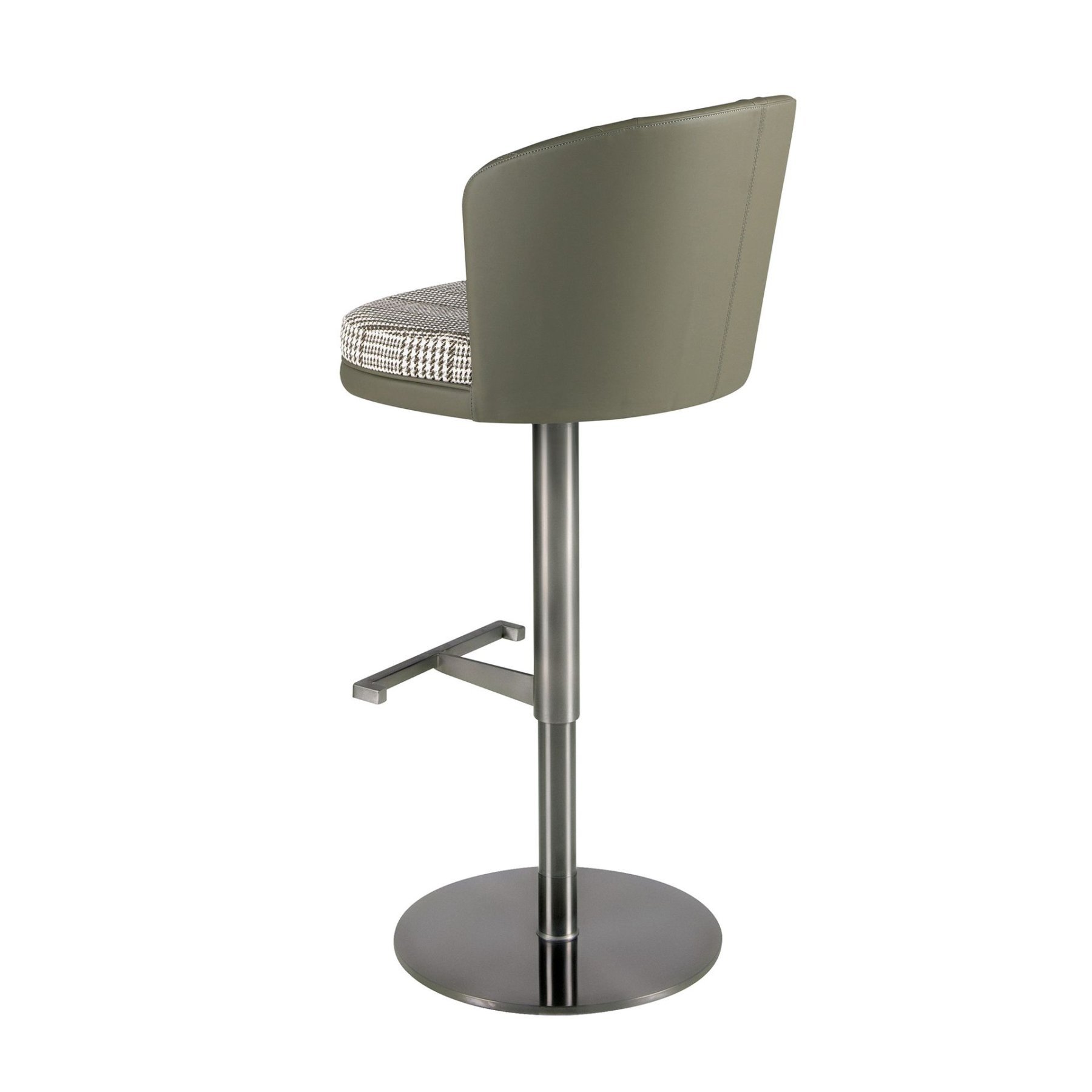 Современный дизайнерский поворотный табурет с сиденьем, обитым темно-зеленой и белой тканью, и спинкой, обитой оливково-зеленой искусственной кожей. Его ножки из полированной нержавеющей стали с темным оттенком, одновременно авангардные и вневременные по стилю, сделают его незаменимым элементом вашей кухни или столовой. Этот табурет от Angel Cerdá сочетает в себе уникальный и индивидуальный стиль бренда с максимальным комфортом и устойчивостью благодаря высокому качеству обивки и оригинальной конструкции ножек. Регулируемая по высоте спинка позволяет настроить ее под ваши потребности, делая ее еще более удобной.