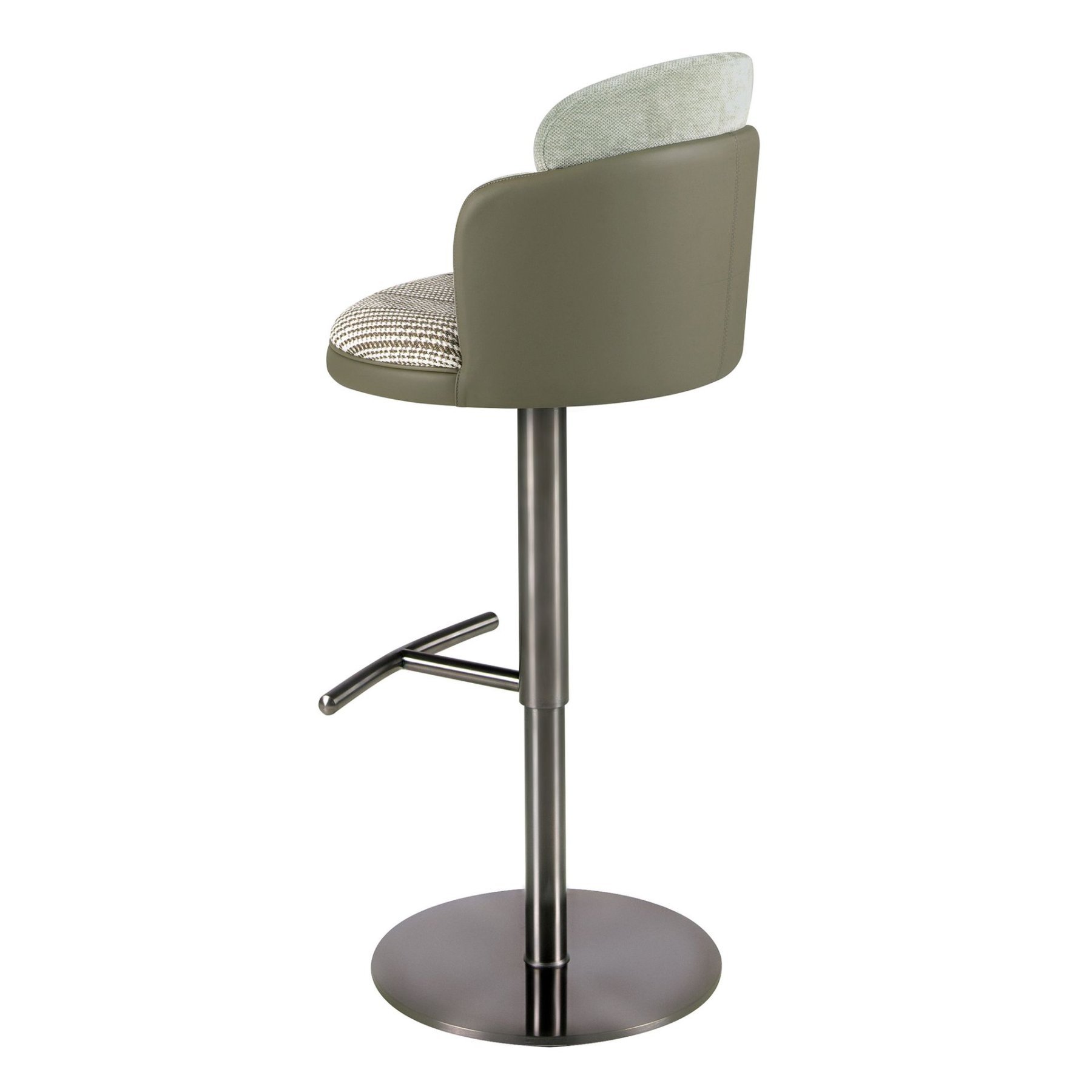 - Поворотный барный стул 4233 из бело-зеленой ткани и оливковой экокожи