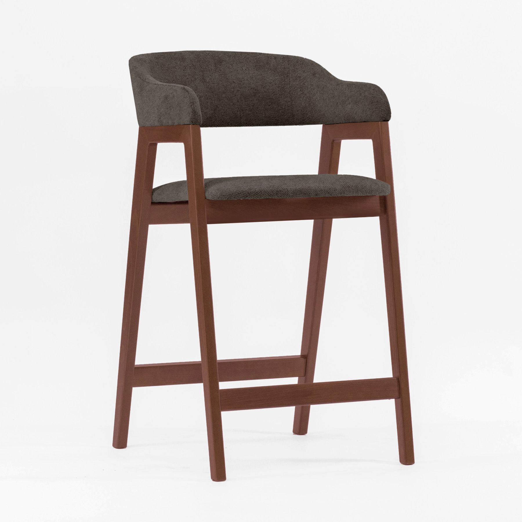 - Стул барный Челси серо-коричневая ткань массив бука (орех) высота подлокотников 93,5 см