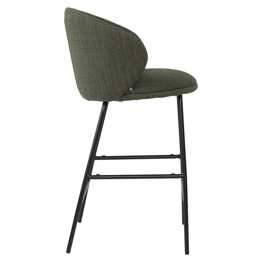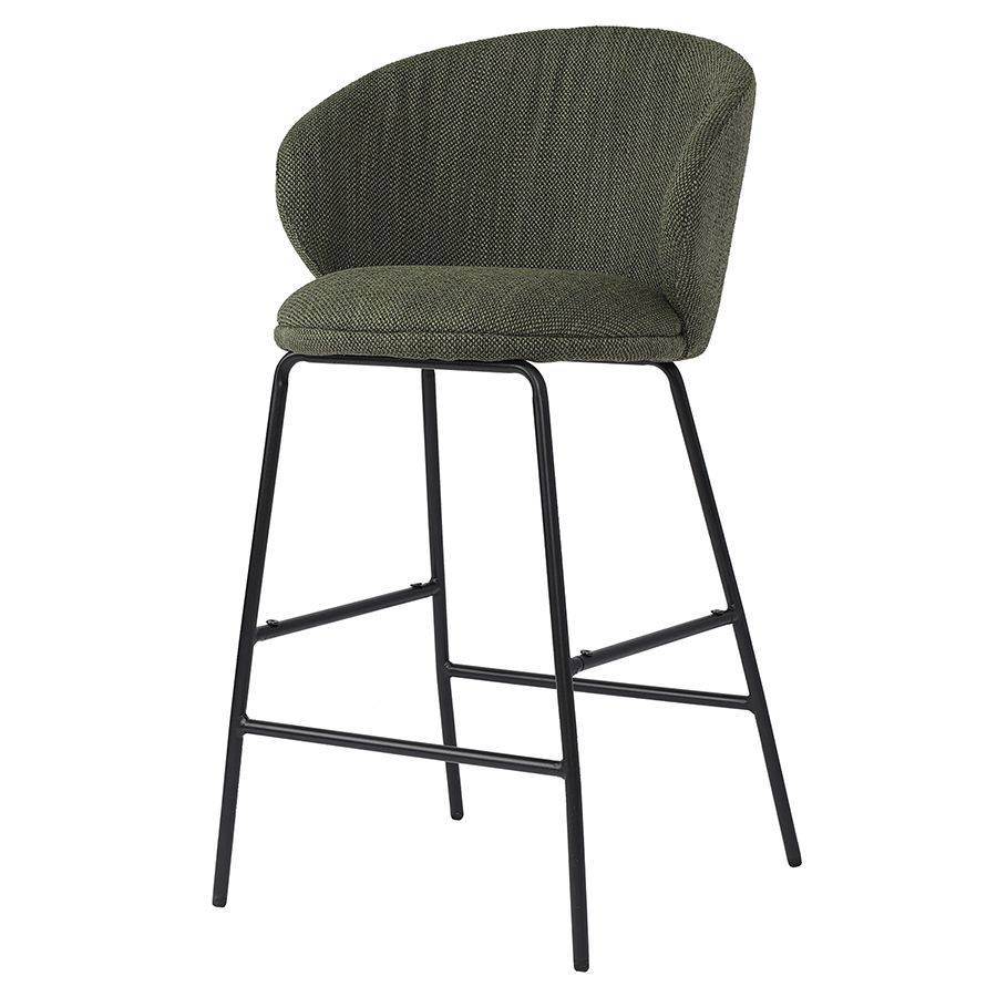 Материалы: сталь, фанера, полиэстер, акрил, пенополиуретан. Размеры: 47х45,5х92 см. Ширина сиденья: 41 см. Глубина сиденья: 41,5 см. Ширина спинки: 52 см. Высота спинки: 28 см. Высота сиденья: 67,5 см. Высота подножки: 18,5 см. Цвет: шпинат.