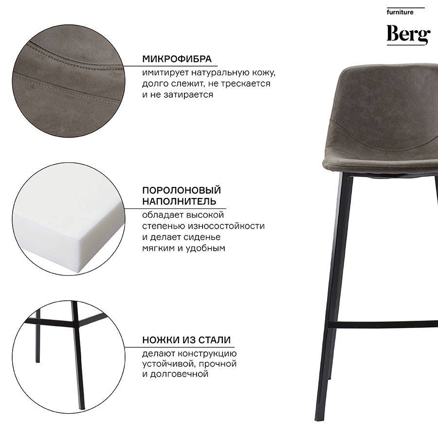 Конструкция устойчива и долговечна. Экокожа не трескается и не затирается. Ножки выполнены из стали с покрытием. Наполнитель — поролон. Максимальная нагрузка — 120 кг.