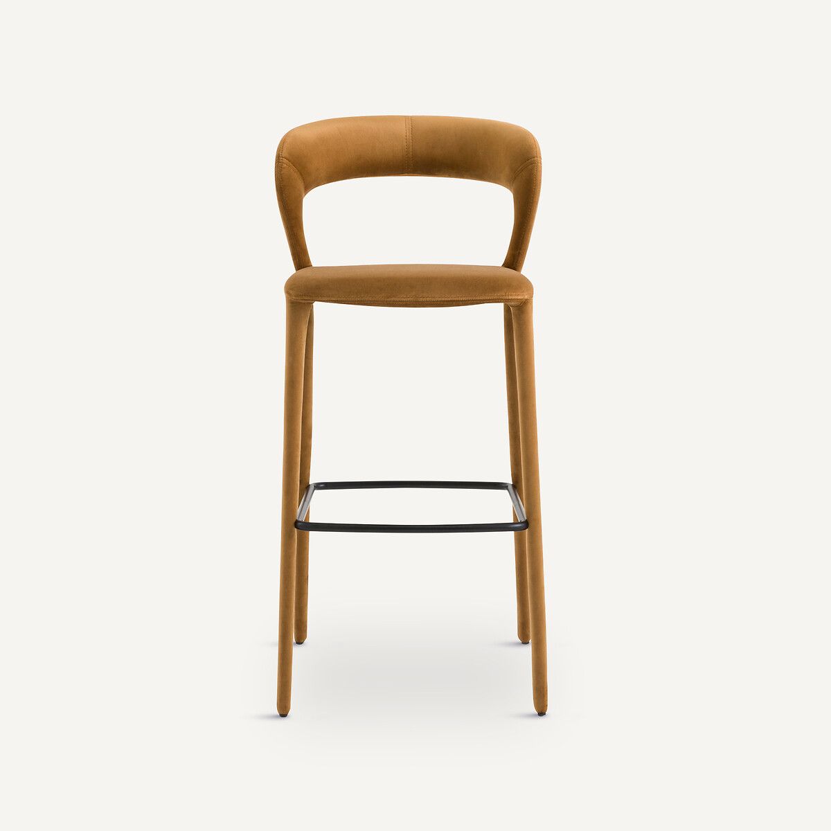 Барный табурет Sama, полностью обшитый велюром. Его эксклюзивный дизайн продуман для создания максимального комфорта. Мягкое сиденье и обтекаемая спинка, облегающая спину.