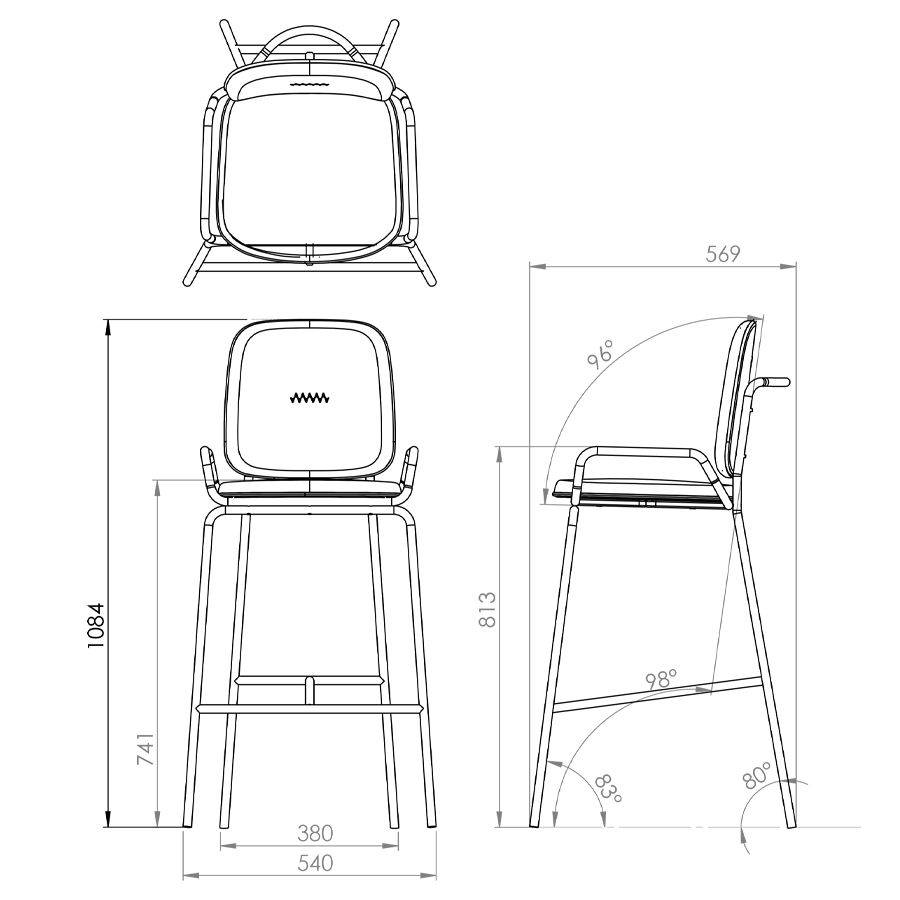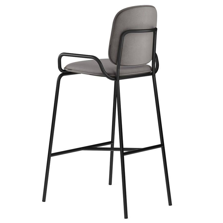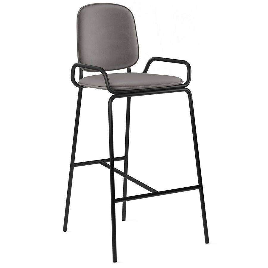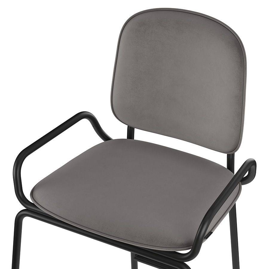 Стул барный Double Frame имеет удобную посадку за счет высокой спинки и широкого основания. Ножки плавно переходят в подлокотники и в нижней части соединяются металлической рамой, которая служит подставкой для ног. Такое дизайнерское решение создает дополнительный комфорт во время сидения.