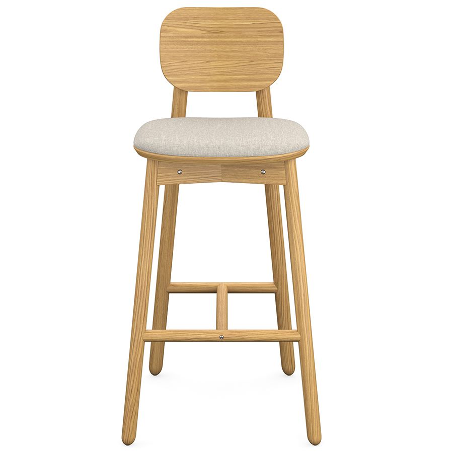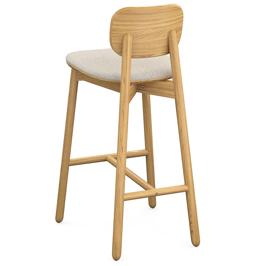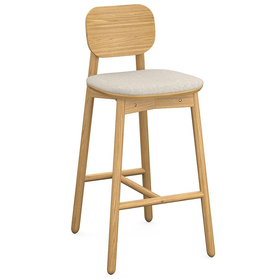 Cтул барный изготовлен из массива ясеня — твердой породы древесины, плотность и прочность которой не уступает характеристикам дуба. Благодаря прекрасным эксплуатационным свойствам материала готовое изделие не подвержено преждевременному износу, деформации, имеет высокие показатели практичности и экологической безопасности. Сиденье с мягкой накладкой из пенополиуретана обеспечивает комфортную посадку. Обивка из рогожки обладает износостойкостью, придает модели современный вид. Наличие специальной перекладины позволяет удобно расположить ноги. Деревянная мебель с лаконичным дизайном всегда актуальна, отлично сочетается с любыми стилевыми решениями, что является ее неоспоримым преимуществом.
