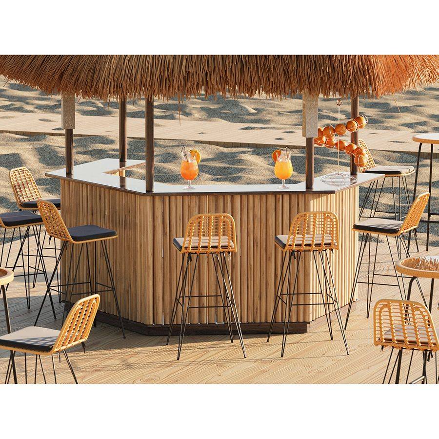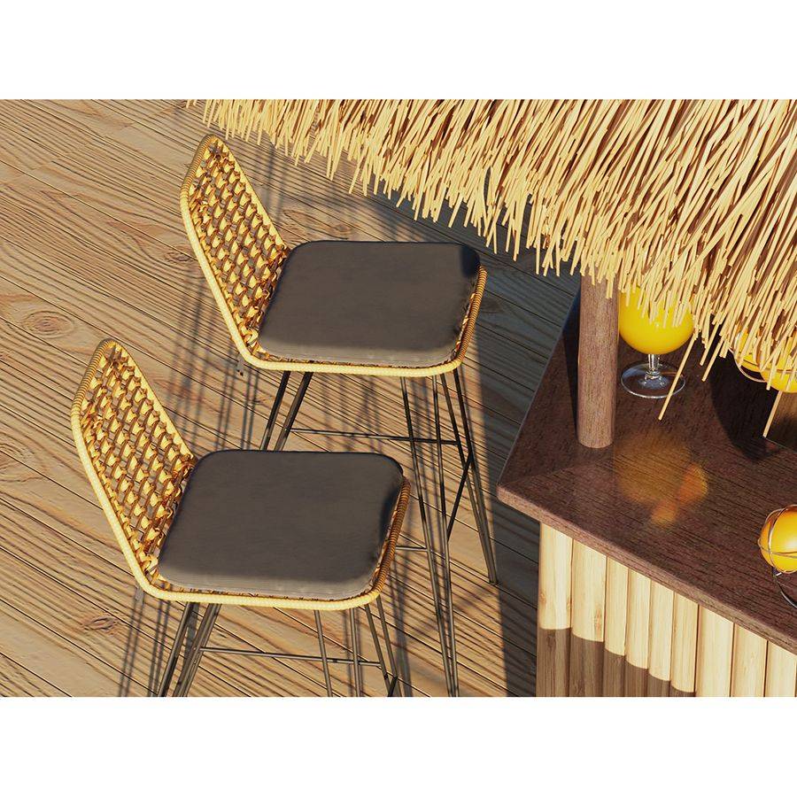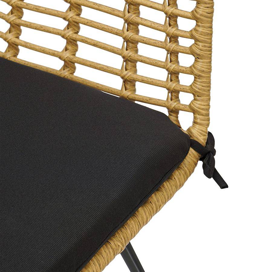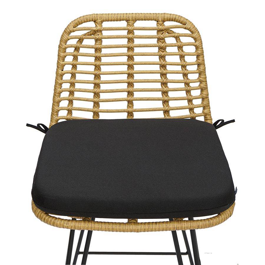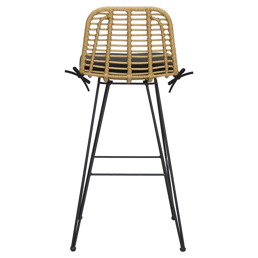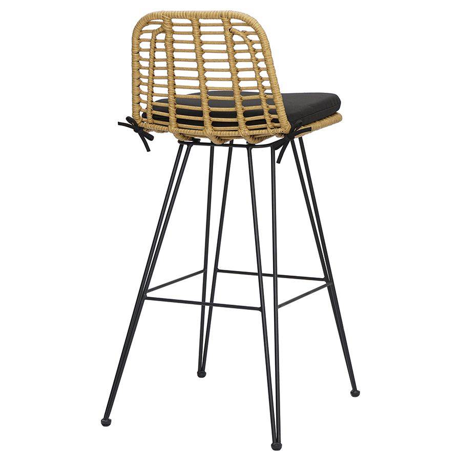 Стул имеет прочный стальной каркас и устойчивые ножки. Порошковое покрытие защищает металлические элементы от коррозии, гарантируя конструкции привлекательный вид на долгие годы. Сиденье выполнено из ротанга и дополнено мягкой подушкой с чехлом из водоотталкивающей ткани толщиной 4 см, которая обеспечивает максимально удобное расположение. Предусмотрена специальная перекладина для удобного размещения ног. Дизайн модели идеально вписывается в такие стилевые решения, как эко, кантри и прованс.