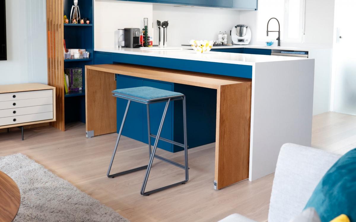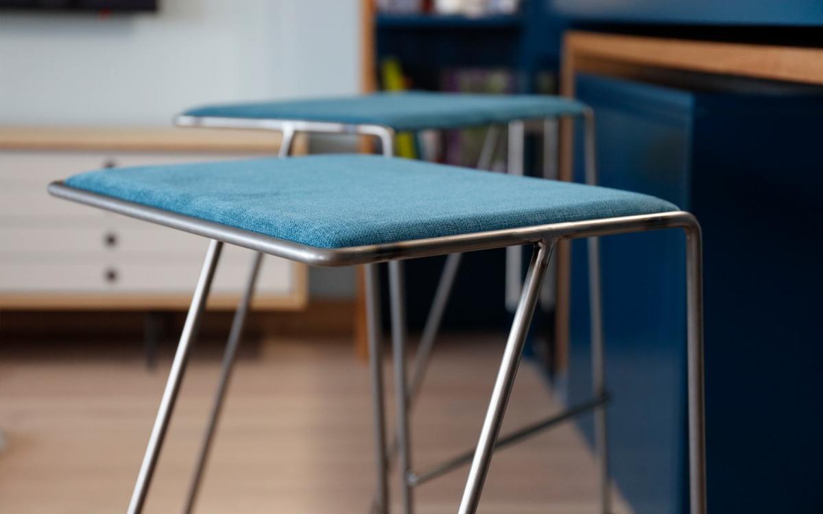 Мы представляем очень важное новшество: принимая во внимание небольшой размер большинства домов, мы создали два табурета, которые можно спрятать один внутри другого, чтобы они занимали половину пространства, когда они не используются. Мы называем их Twindy.