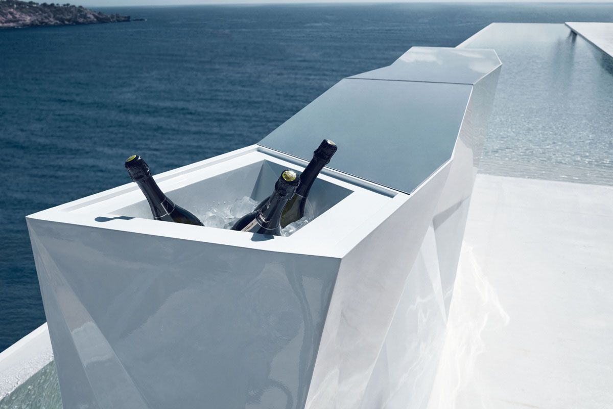 Барная стойка, созданная испанским дизайнером Рамоном Эстеве, завораживает и восторгает. Форма, напоминающая айсберг, выглядит ошеломляюще эффектно. Такая стойка не для каждого интерьера. Ей нужно место, свет, соответствующая обстановка. И если вы готовы обеспечить все эти условия, то этот предмет мебели станет безусловном центром притяжения и местом для фотосессий всех ваших гостей.