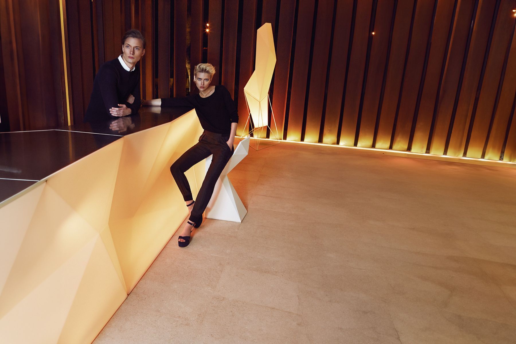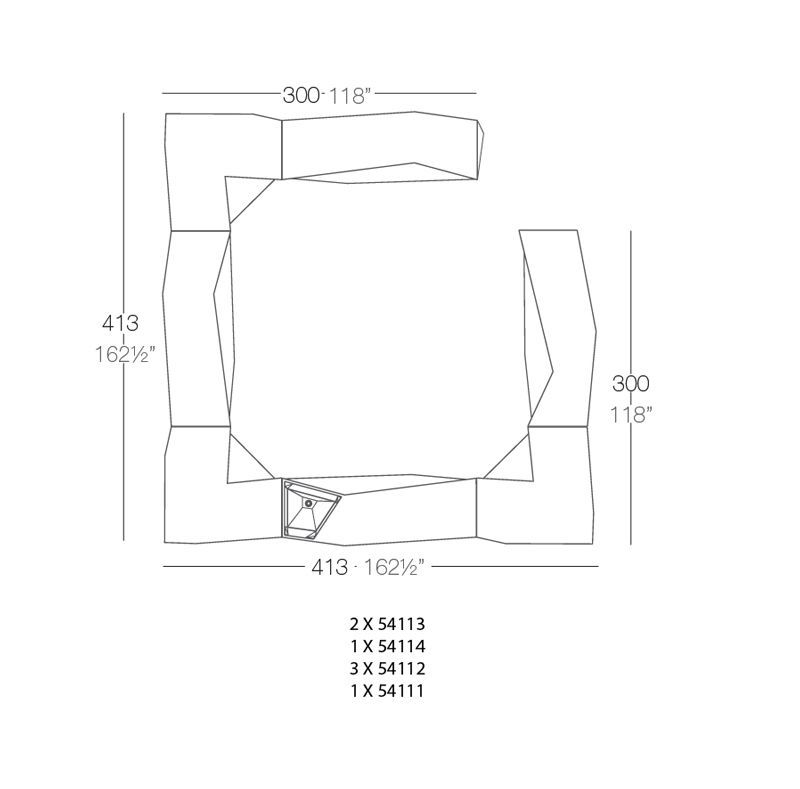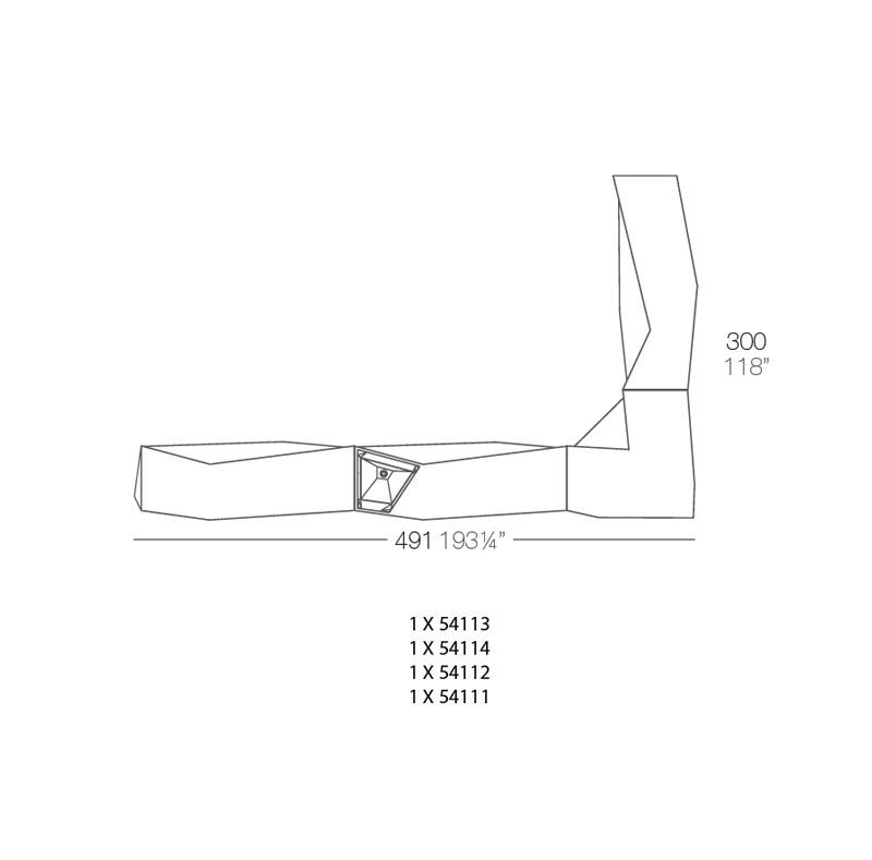 Барная стойка имеет форму многогранника. Множество геометрических фигур правильной и неправильной формы образуют выпуклости и вогнутости, отчего очертания изделия выглядят эффектно, отчасти напоминая ограненный камень или айсберг.